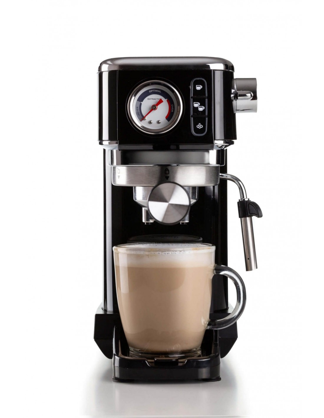 Per la tua cucina e per il tuo caffè ideale la macchina per caffè 1381 è la tua alleata per concedersi un’ intensa pausa con gusto ed eleganza. Il design slim e compatto della macchina caffè in metallo la rende unica per ogni cucina: solo 14 cm di larghezza che si adattano a qualsiasi angolo della cucina, senza rinunciare allo spazio per altri elettrodomestici. Per brevi momenti di pausa prepara un caffè dal sapore intenso grazie ai 15 bar di pressione per ottenere un’erogazione perfetta sia del caffè in polvere che della cialda, ma anche per una ricca colazione a cui aggiungere un cremoso cappuccino grazie al dispositivo Maxi-Cappuccino. Scegli la tua bevanda e regola l’altezza del raccogli gocce in base alla tazza che preferisci. E' la macchina caffè manometro: grazie al manometro potrai sempre capire se i parametri di acqua, quantità di caffè e grado di macinatura sono in equilibrio e bilanciati tra di loro per garantirti sempre il miglior espresso possibile.Per chi ama i sapori delicati, la macchina 1381 dispone dell’erogatore d’acqua calda per preparare tè, infusi e tisane dei tuoi gusti preferiti.