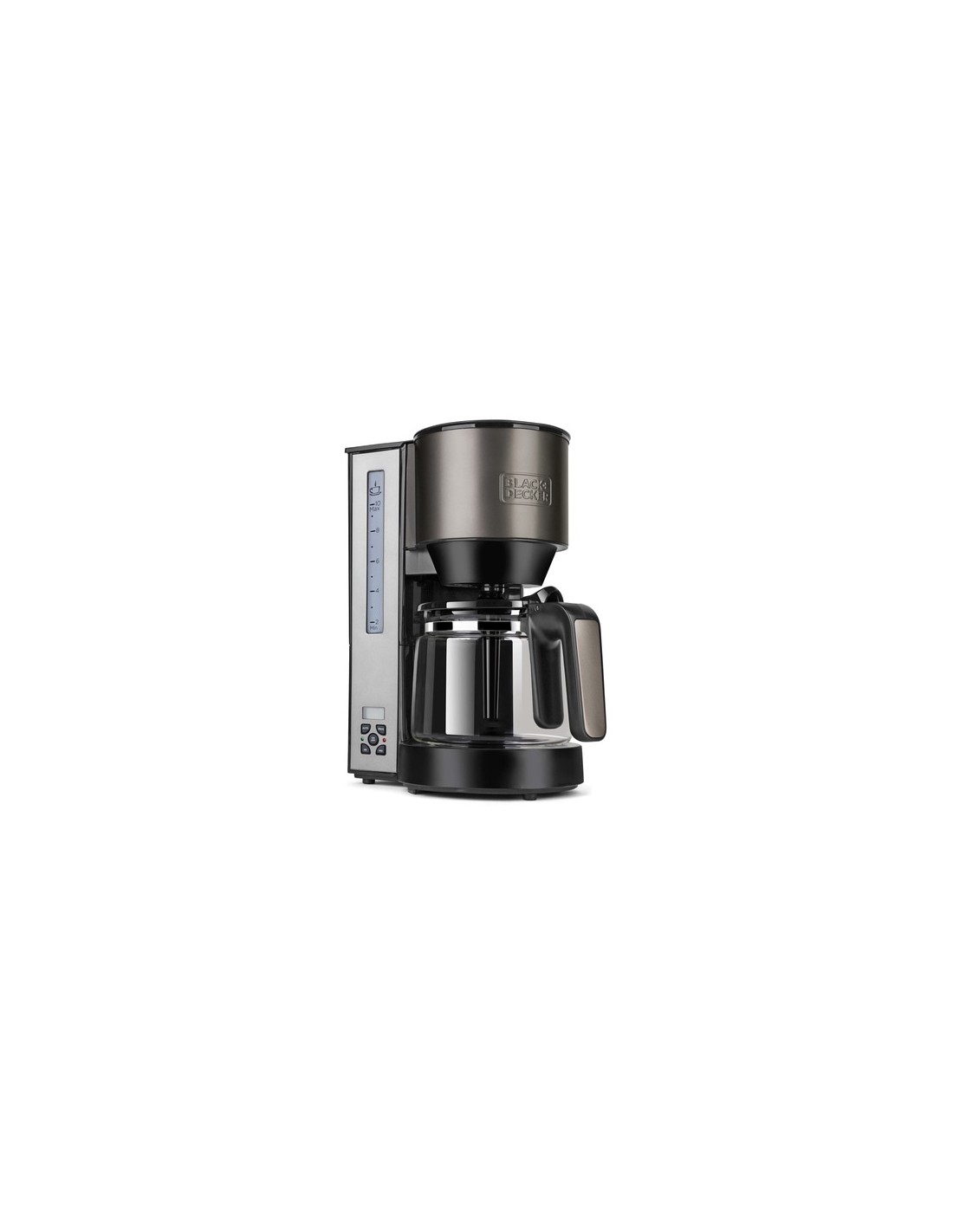 Black & Decker BXCO1000E. Tipo di prodotto: Macchina da caffè con filtro, Tipologia macchina del caffé: Automatica, Vaschetta per caffè preparato: Brocca, Capacità in tazze: 10 tazze. Tipo di display: LCD. Potenza: 1000 W. Colore del prodotto: Acciaio inox