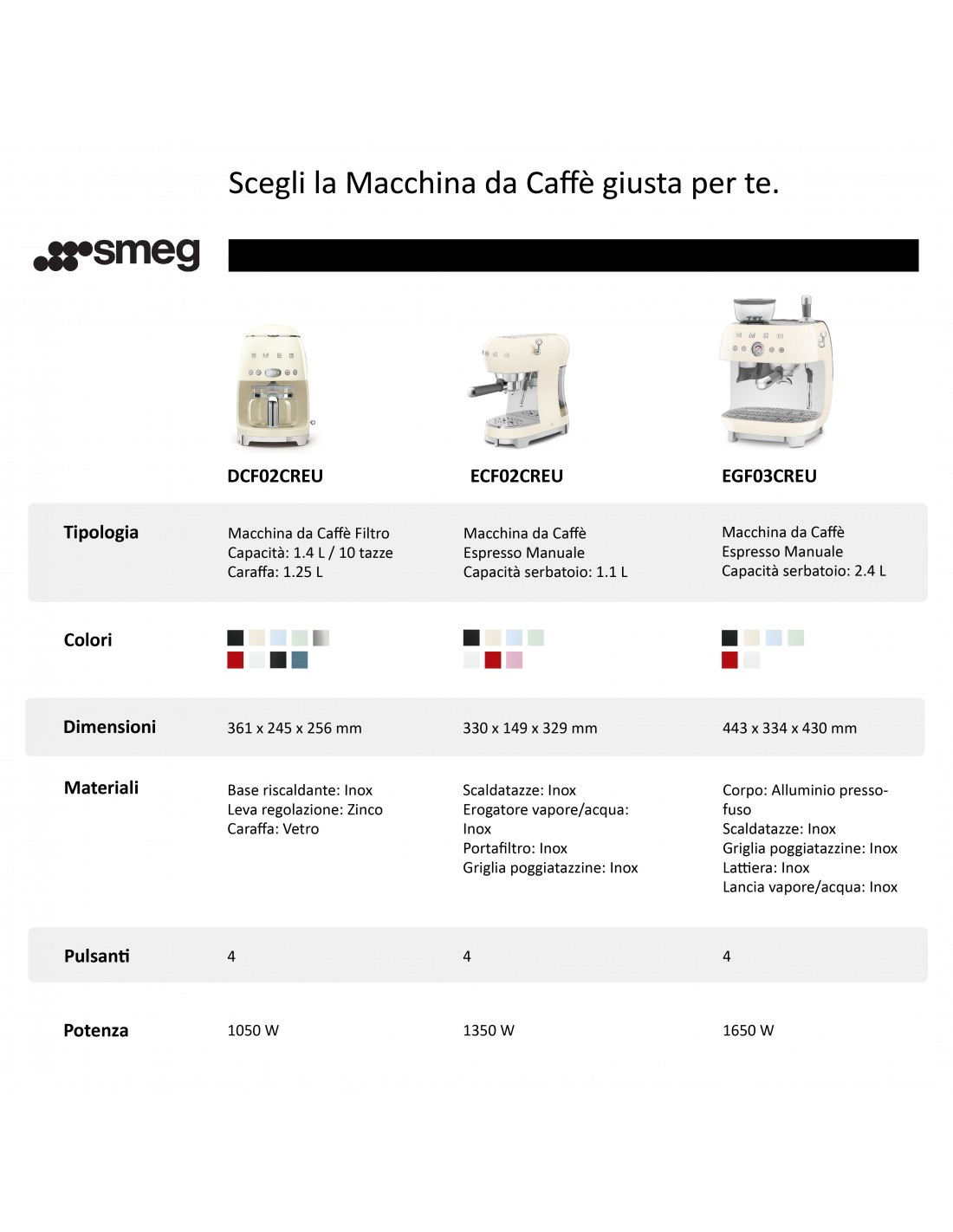 Smeg Macchina da Caffè Espresso Manuale 50's Style – Panna LUCIDO – ECF02CREU