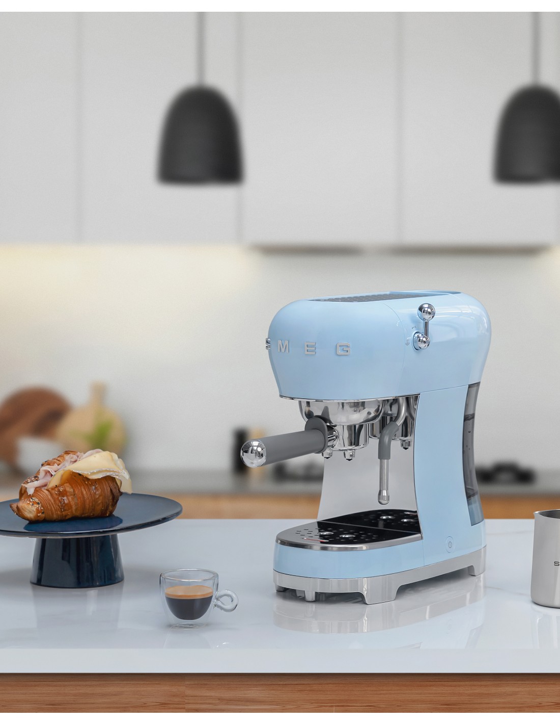 La nuova macchina da caffè ECF02 è adatta sia al caffè macinato che alle cialde di carta grazie al portafiltro in acciaio inossidabile. Inoltre, il sistema di riscaldamento Thermoblock garantisce tempi di erogazione rapidi e un controllo preciso della temperatura dell'acqua per l'erogazione del caffè. Con una pressione di 15 bar, la nuova macchina del caffè Smeg ECF02 promette i migliori risultati per un Espresso eccellente.