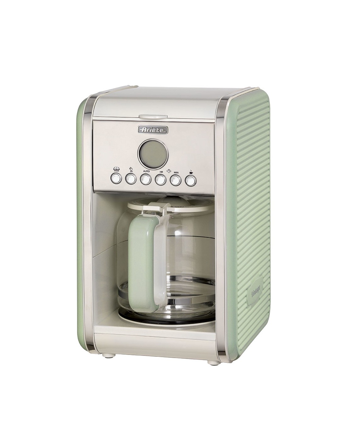 Macchina per caffè americano, prepara da 4 a 12 tazze di delizioso caffè lungo, caldo e gustoso. Grazie al timer incorporato ed al display LCD è possibile programmare l'erogazione del caffè entro le 24h. La piastra di appoggio della caraffa in vetro temperato mantiene in caldo la bevanda per circa mezz'ora. Il sistema antigoccia permette di interrompere l'erogazione all’estrazione della tazza, per riprendere premendo il pulsante pausa&servi. Il portafiltro è estraibile e facilmente lavabile.