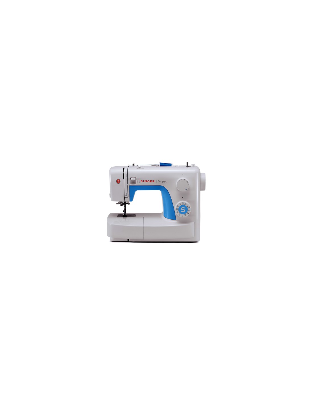SINGER 3221. Colore del prodotto: Blu, Bianco, Tipo: Macchina da cucire automatica, Funzioni della macchina da cucire: Cucito. Tipo alimentazione: Elettromeccanico. Larghezza: 385 mm, Profondità: 190 mm, Altezza: 290 mm. Accessori per macchina da cucire inclusi: Piedino Per Asole, Custodia