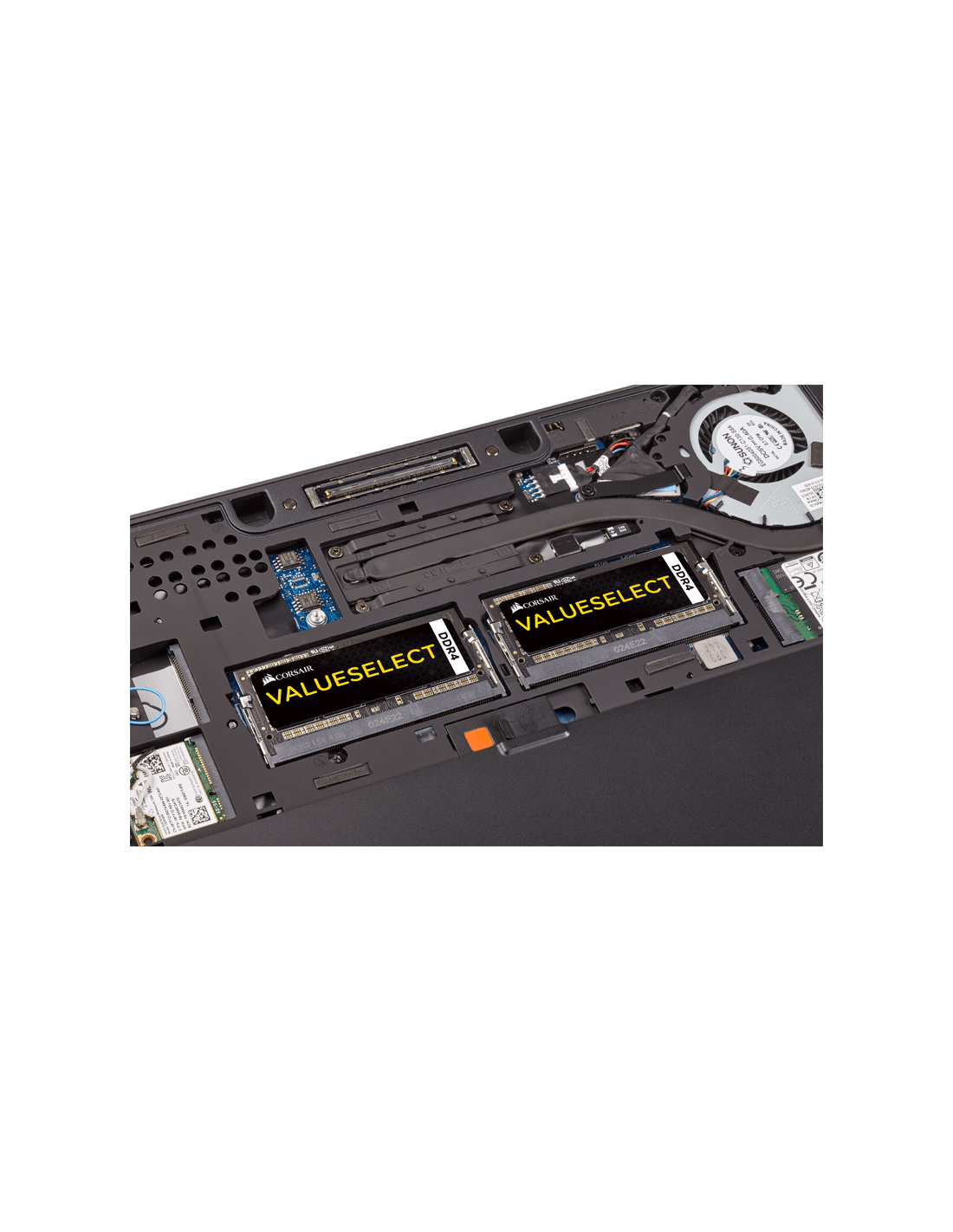 Corsair ValueSelect CMSO4GX4M1A2133C15. Componente per: Computer portatile, RAM installata: 4 GB, Layout di memoria (moduli x dimensione): 1 x 4 GB, Tipo di RAM: DDR4, Velocità memoria: 2133 MHz, Fattore di forma memoria: 260-pin SO-DIMM, Latenza CAS: 15