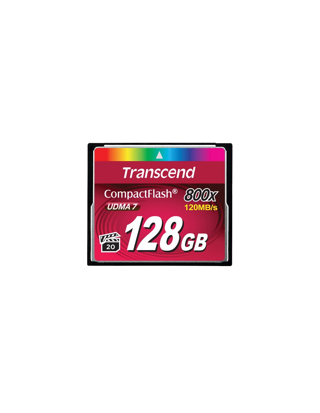Transcend 128GB 800x CF. Capacità: 128 GB, Tipo flash card: CompactFlash, Tipo di RAM: MLC, Velocità di lettura: 120 MB/s, Velocità di scrittura: 60 MB/s