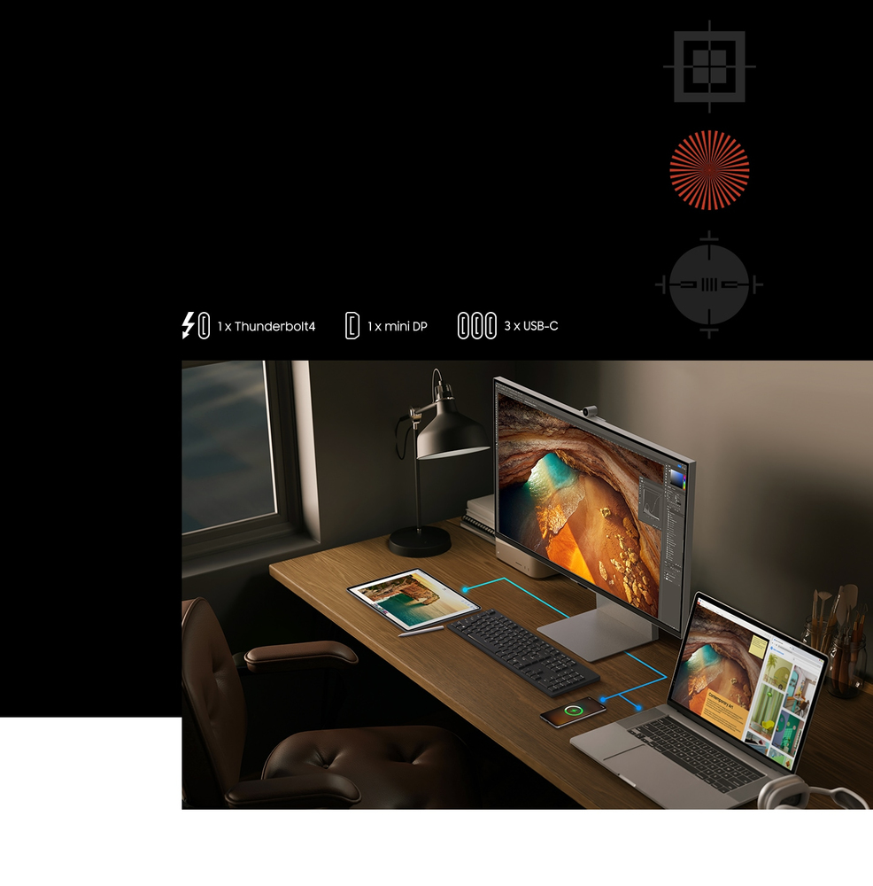 Un monitor 5K in grado di collegarsi ai tuoi dispositivi Windows e Mac preferiti, grazie agli standard di connettività DisplayPort e Thunderbolt 4. La compatibilità con il nuovo standard Thunderbolt 4 permette di trasferire i dati in modo più affidabile.