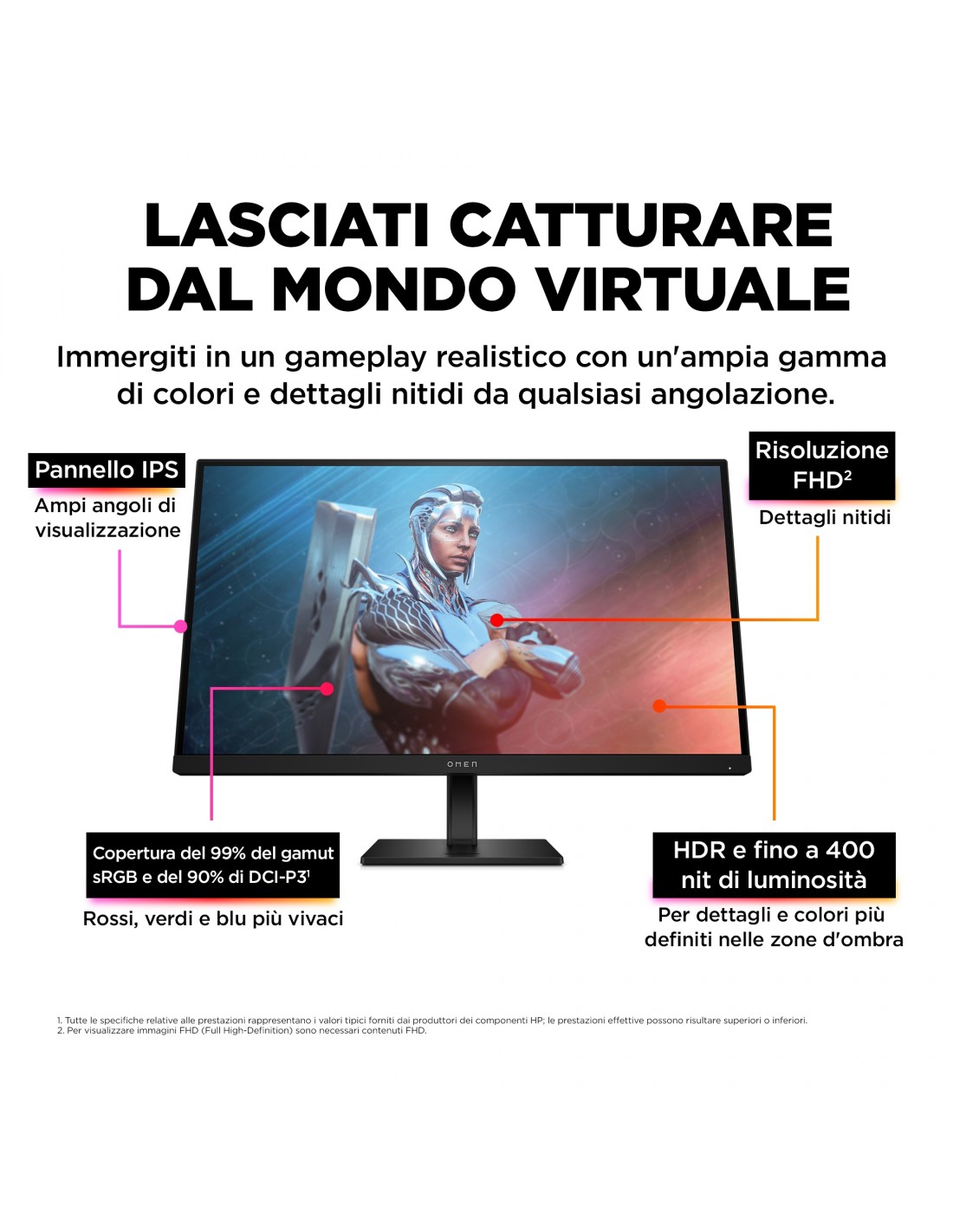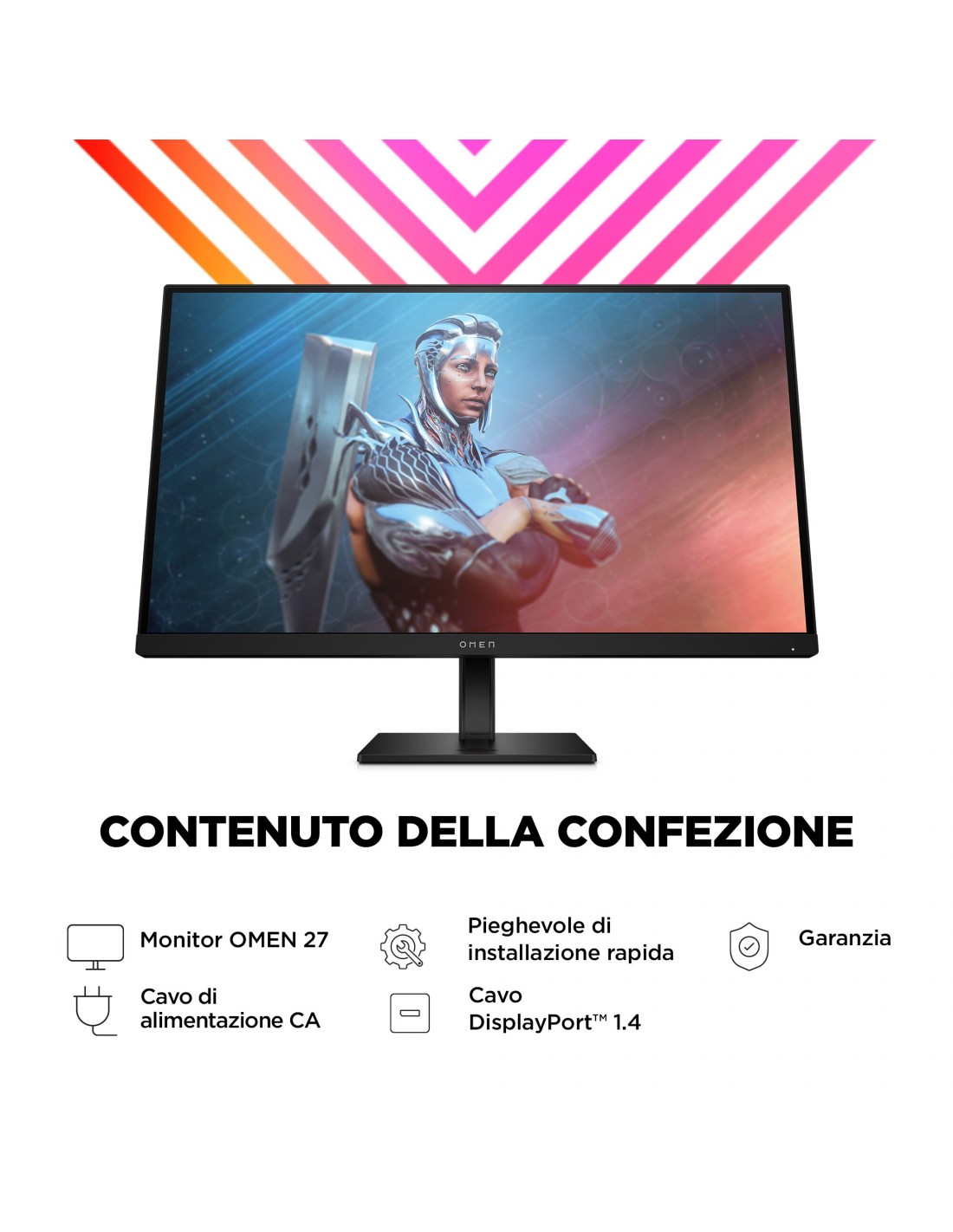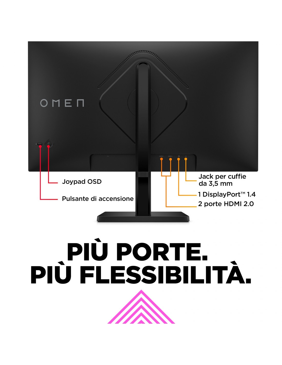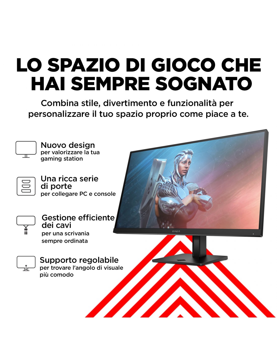 Preparati a cogliere nuove possibilità con il monitor da gaming OMEN by HP da 27'', con display FHD a 165 Hz. Con le sue prestazioni rapide e i suoi colori intensi ti immergerà completamente nei tuoi giochi preferiti, mentre il suo design elegante aggiunge un tocco di classe alla scrivania.