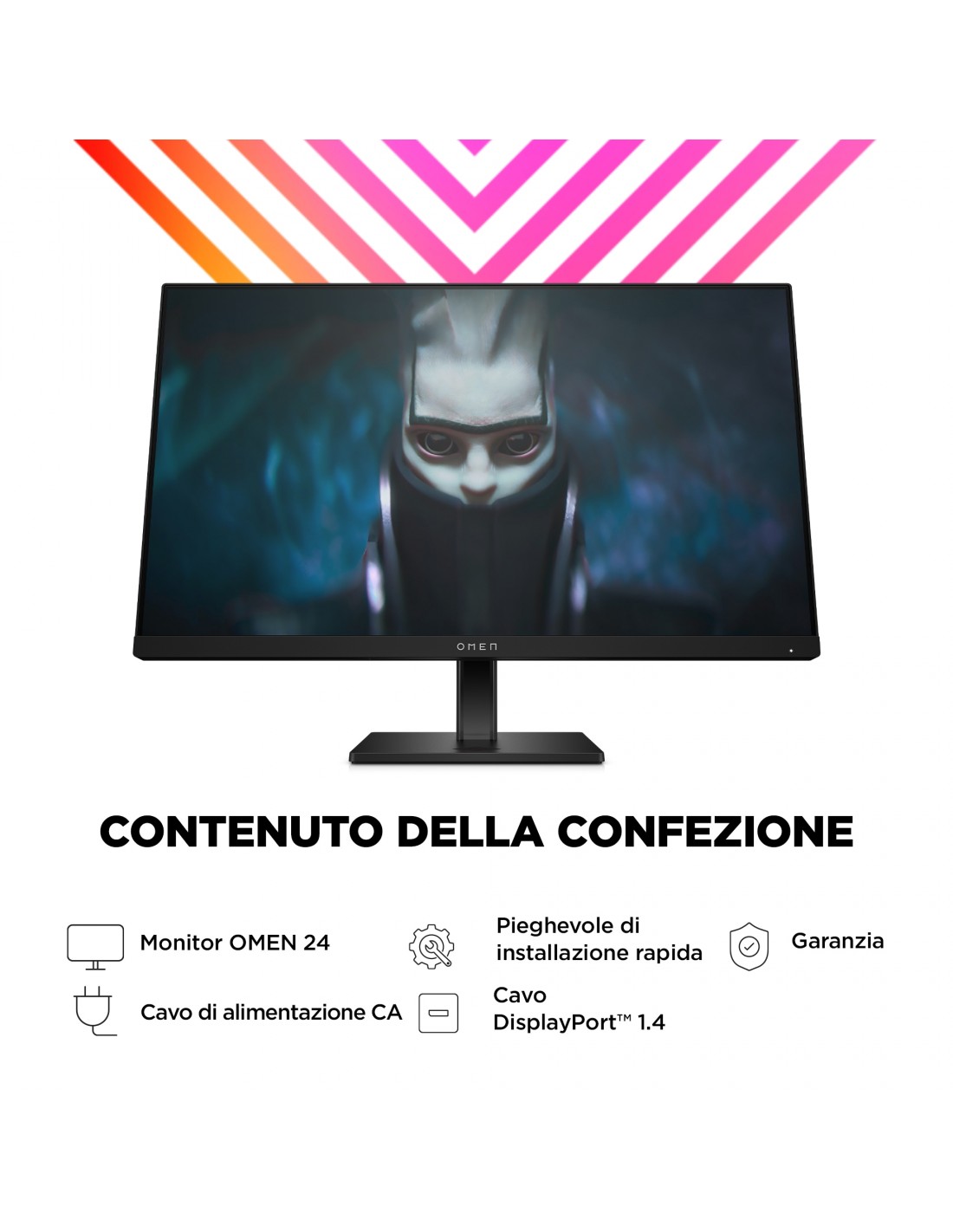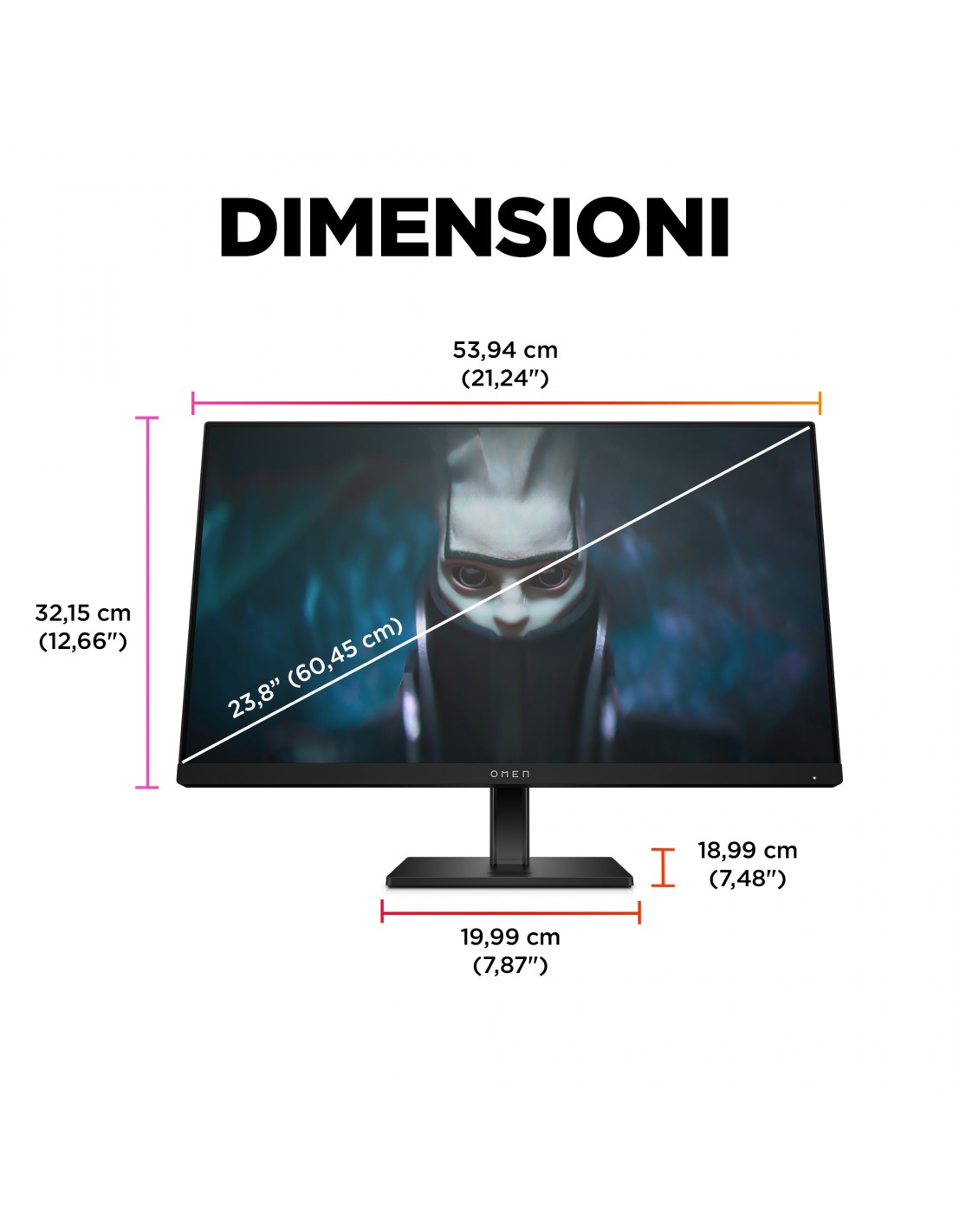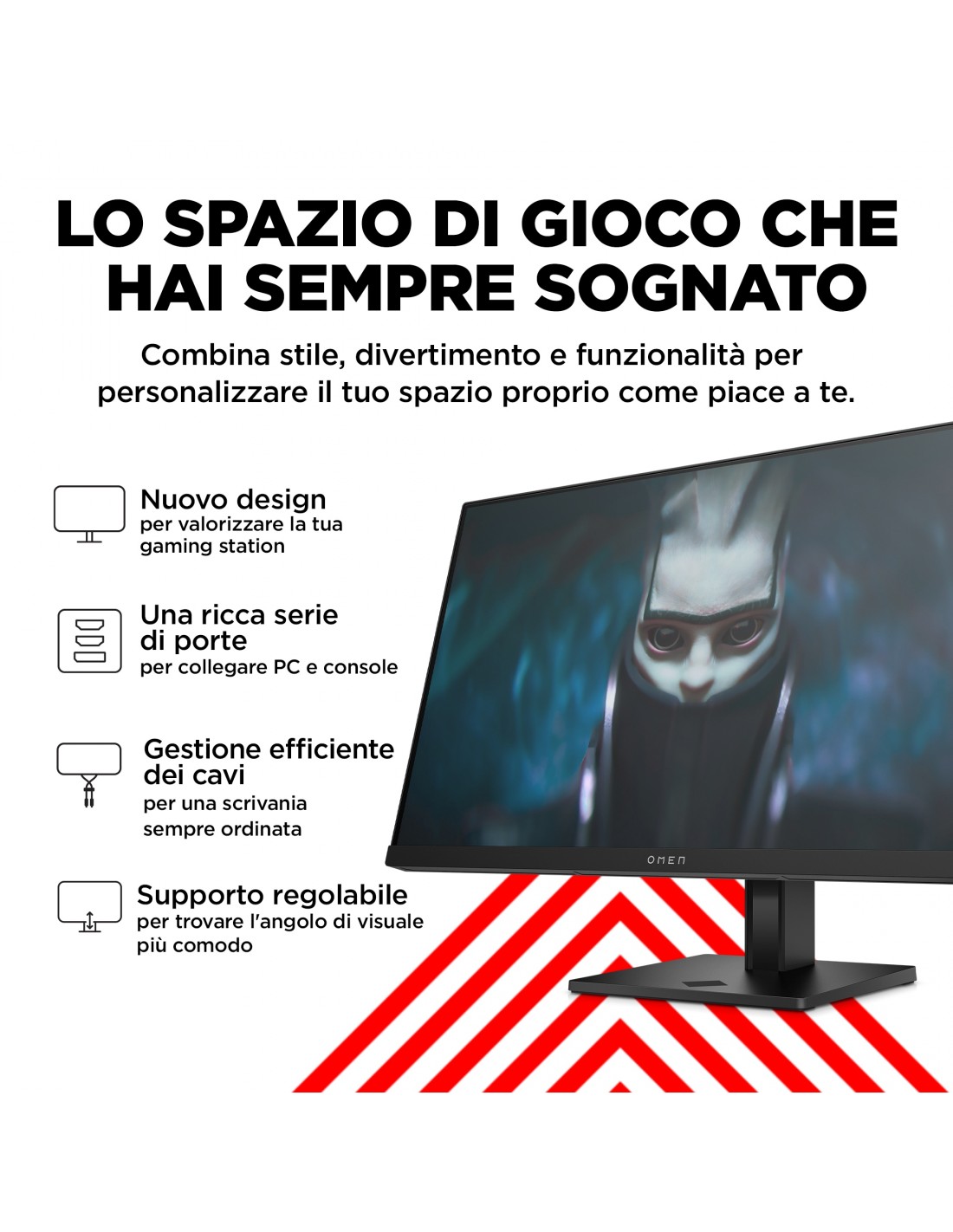Preparati a cogliere nuove possibilità con il monitor da gaming OMEN by HP da 23,8'', con display FHD a 165 Hz. Con le sue prestazioni rapide e i suoi colori intensi ti immergerà completamente nei tuoi giochi preferiti, mentre il suo design elegante aggiunge un tocco di classe alla scrivania.