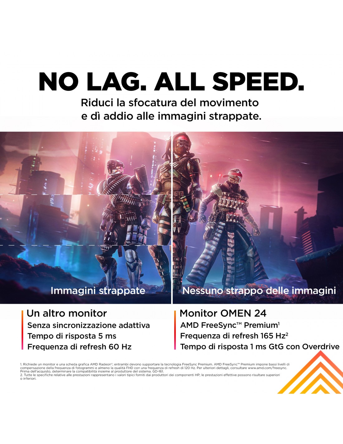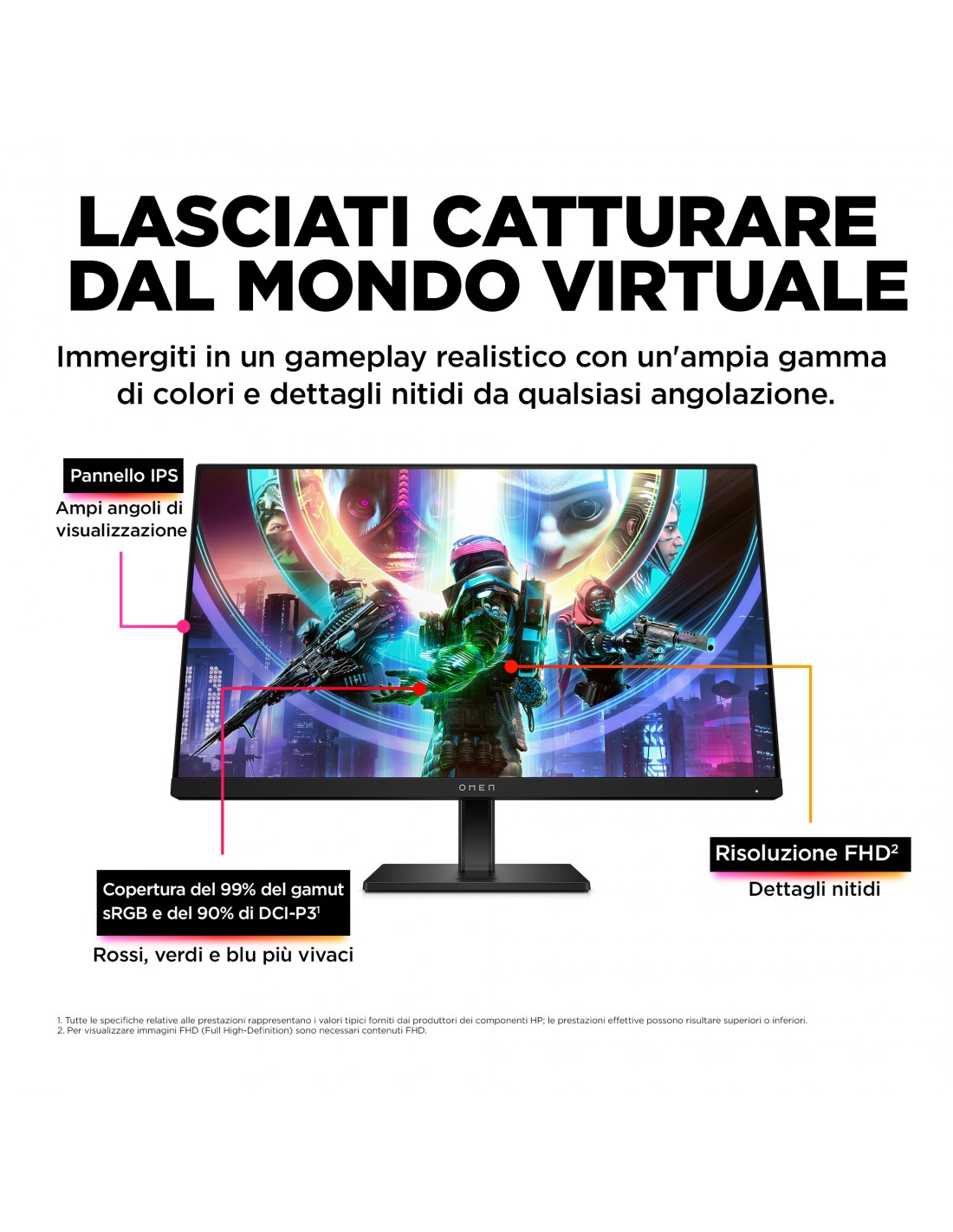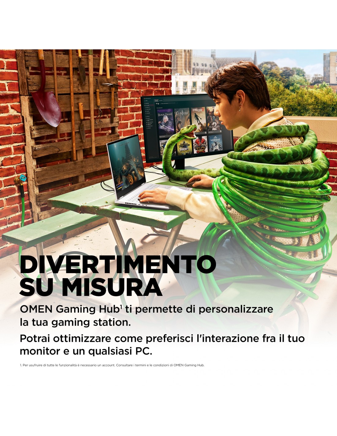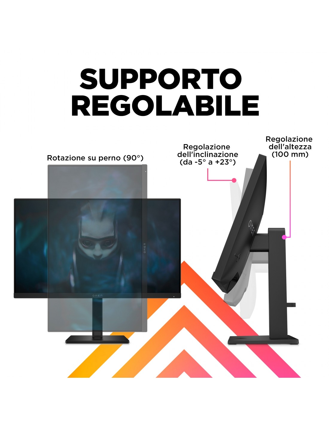 Preparati a cogliere nuove possibilità con il monitor da gaming OMEN by HP da 23,8'', con display FHD a 165 Hz. Con le sue prestazioni rapide e i suoi colori intensi ti immergerà completamente nei tuoi giochi preferiti, mentre il suo design elegante aggiunge un tocco di classe alla scrivania.