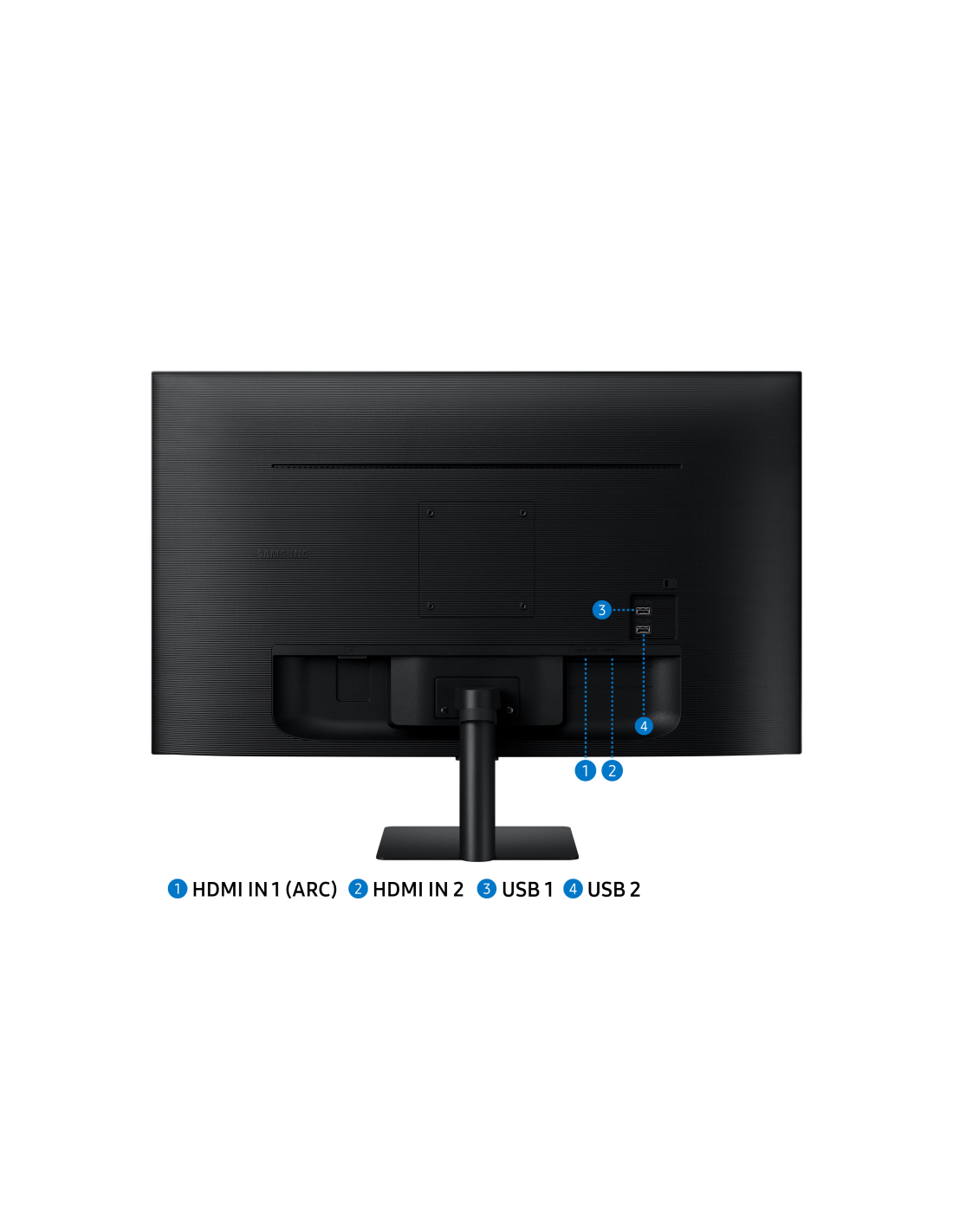 Samsung Smart Monitor M5 - M50D da 32'' Full HD Flat. Dimensioni diagonale schermo: 81,3 cm (32"), Risoluzione del display: 1920 x 1080 Pixel, Tipologia HD: Full HD, Tecnologia display: LED, Tempo di risposta: 4 ms, Rapporto d'aspetto nativo: 16:9, Angolo di visualizzazione (orizzontale): 178°, Angolo di visualizzazione (verticale): 178°. Altoparlanti incorporati. Hub USB integrato. Montaggio standard VESA. Colore del prodotto: Nero