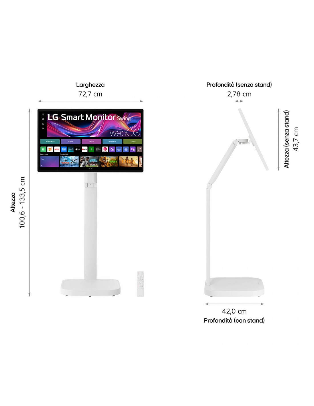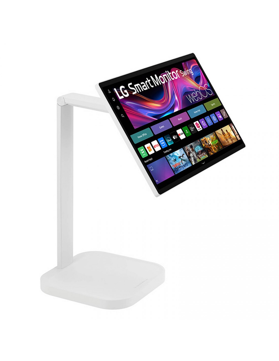Alzalo, inclinalo, orientalo, ruotalo. Lo stand di LG Swing è totalmente flessibile, per farti interagire con il display touch da qualsiasi posizione, che tu sia in piedi, alla scrivania o seduto per terra.