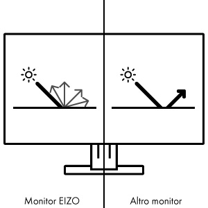 Il pannello IPS propone una superficie antiriflesso che aiuta a ridurre efficacemente abbagliamenti e riverberi, proteggendo gli occhi da sforzi eccessivi e di conseguenza evitando stress e affaticamento visivo. Il monitor offre un'ampio angolo di visione senza perdite e variazioni cromatiche nelle aree laterali, pratico e vantaggioso se più persone sono sedute davanti allo schermo.