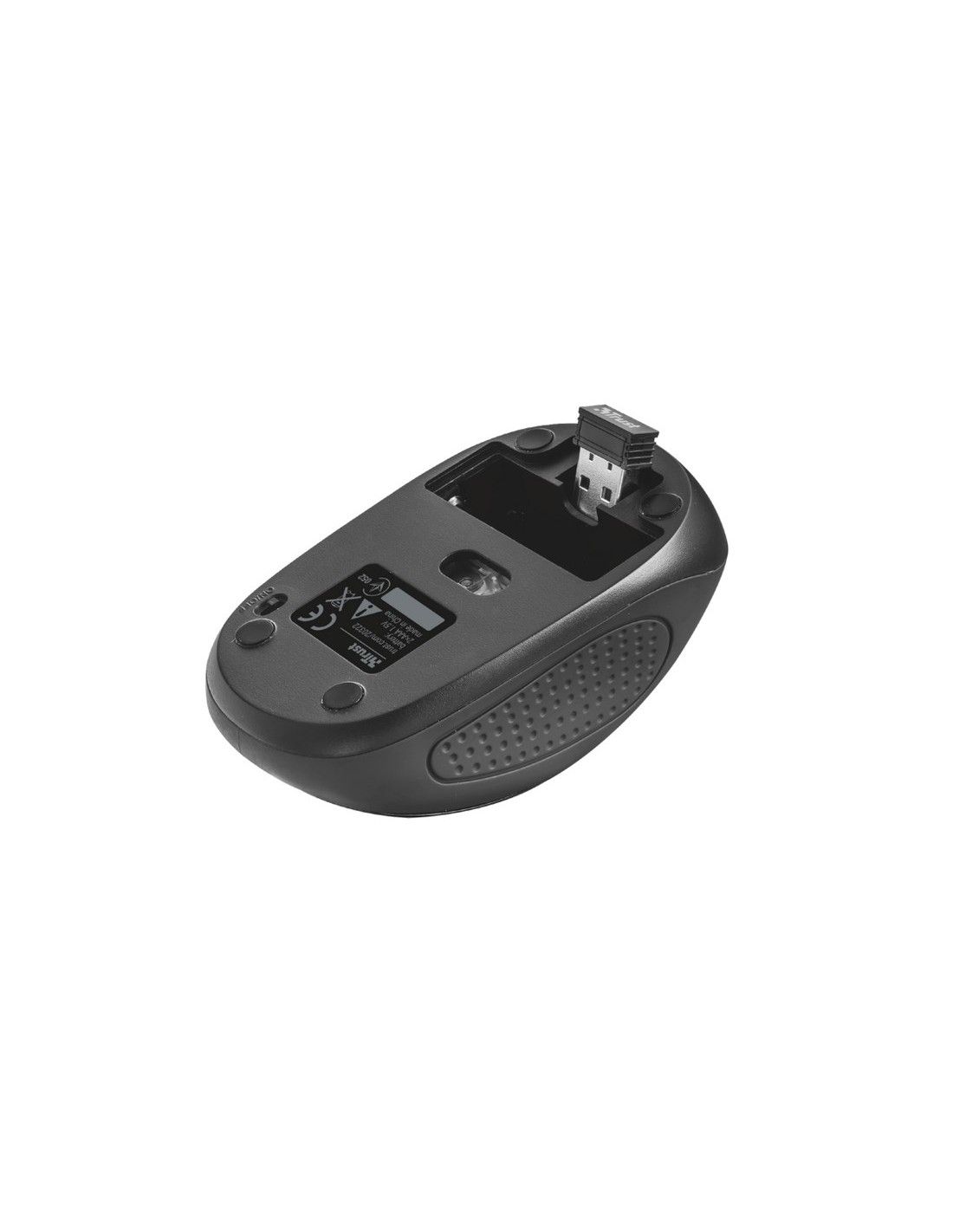 Trust 20322. Fattore di forma: Ambidestro. Tecnologia di rilevamento del movimento: Ottico, Interfaccia dispositivo: RF Wireless, Risoluzione movimento: 1600 DPI, Tipo di pulsanti: Tasti premuti, Numero di tasti: 4, Tipo di scorimmento: Rotella. Alimentazione: Batterie. Colore del prodotto: Nero