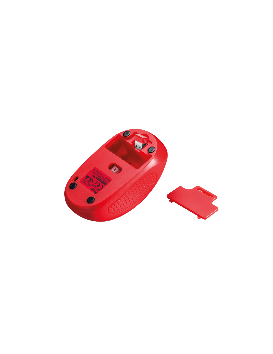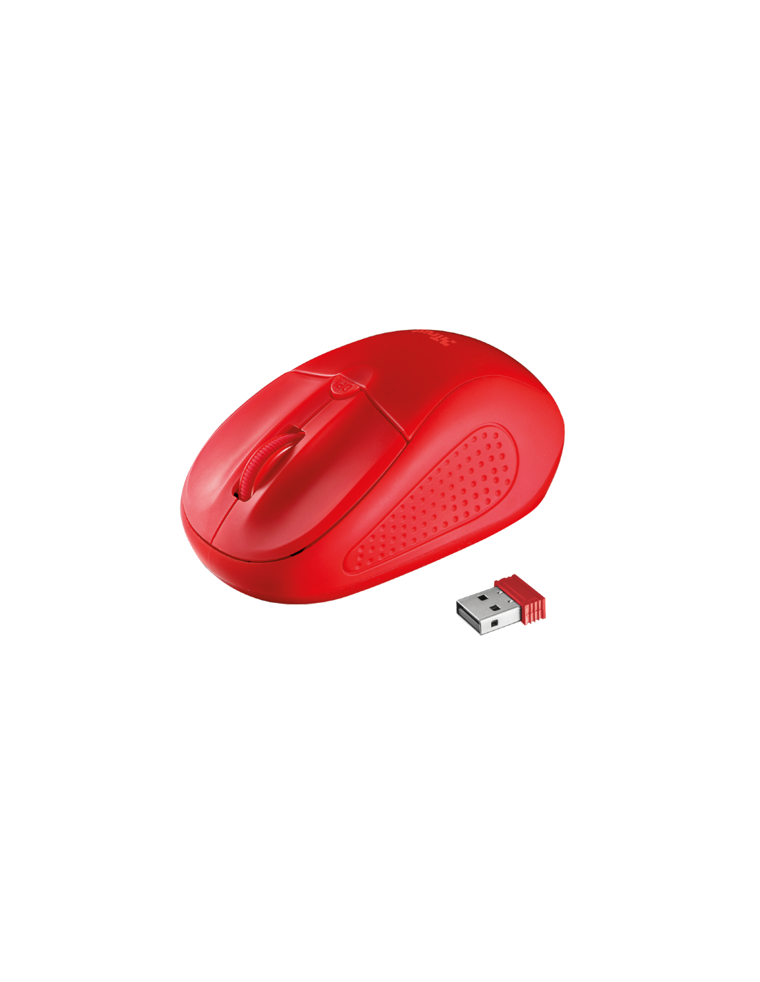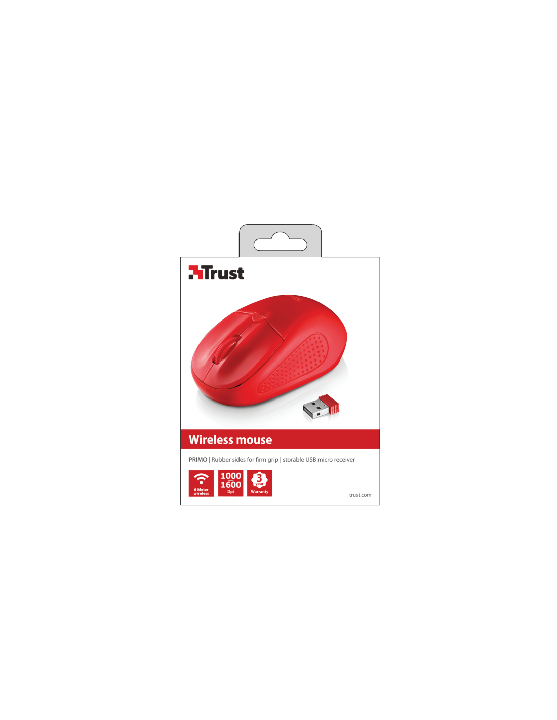 Trust 20787. Fattore di forma: Ambidestro. Tecnologia di rilevamento del movimento: Ottico, Interfaccia dispositivo: RF Wireless, Risoluzione movimento: 1600 DPI, Tipo di pulsanti: Tasti premuti, Tipo di scorimmento: Rotella. Alimentazione: Batterie. Colore del prodotto: Rosso