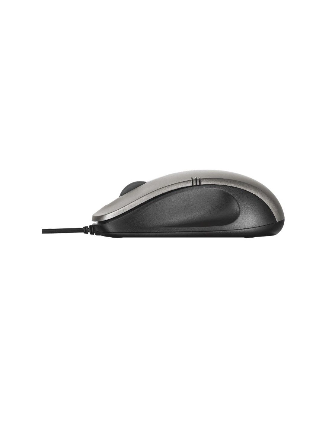 Trust 20404. Fattore di forma: Ambidestro. Tecnologia di rilevamento del movimento: Ottico, Interfaccia dispositivo: USB, Risoluzione movimento: 1000 DPI, Tipo di pulsanti: Tasti premuti, Numero di tasti: 3, Tipo di scorimmento: Rotella. Alimentazione: Cavo. Colore del prodotto: Nero, Argento