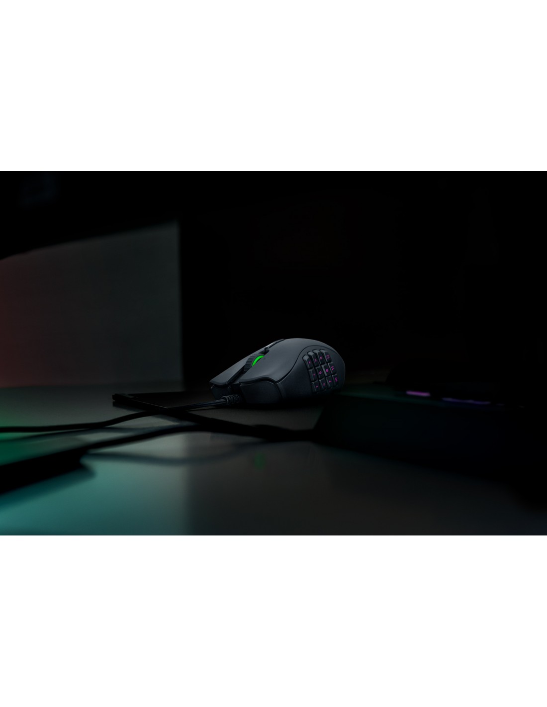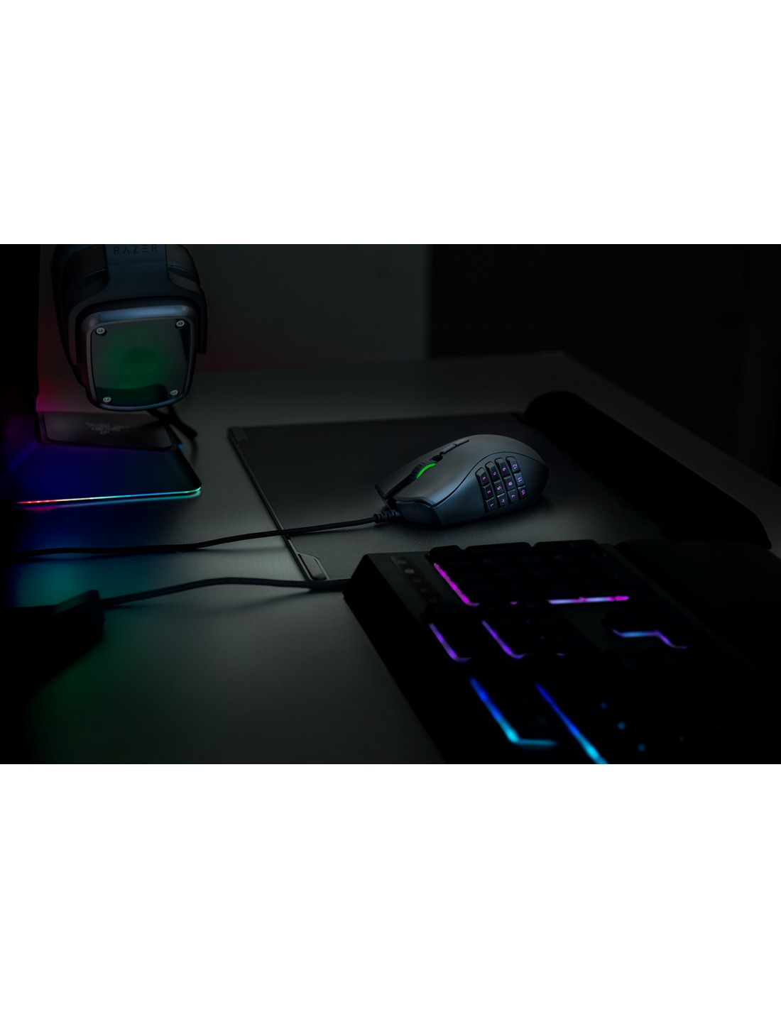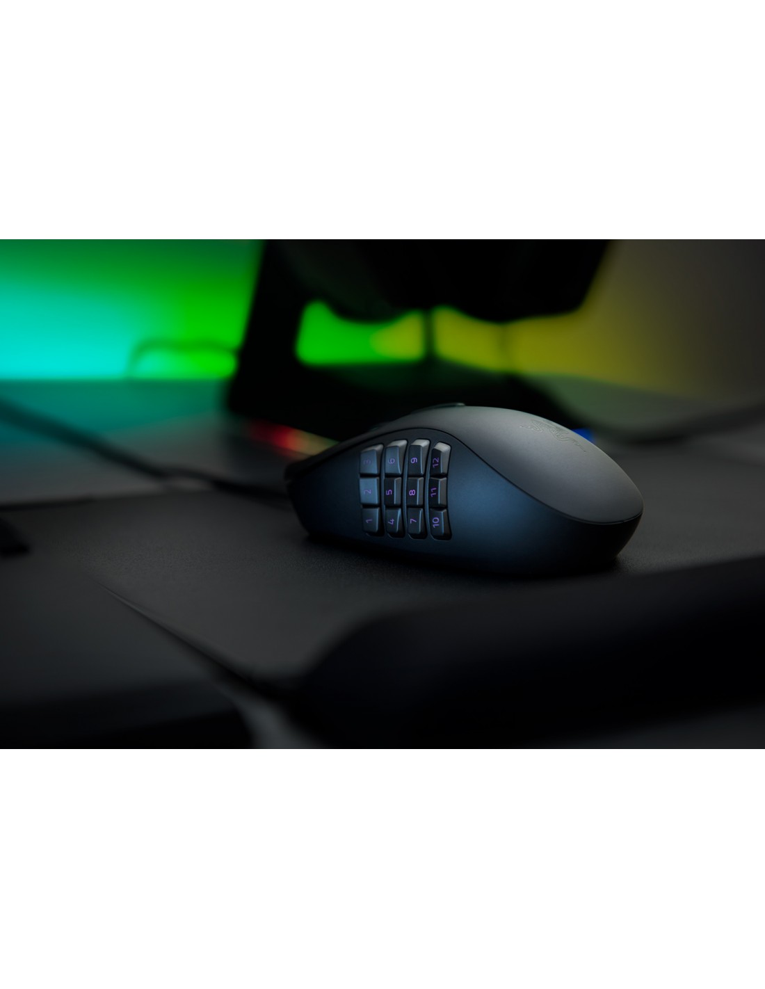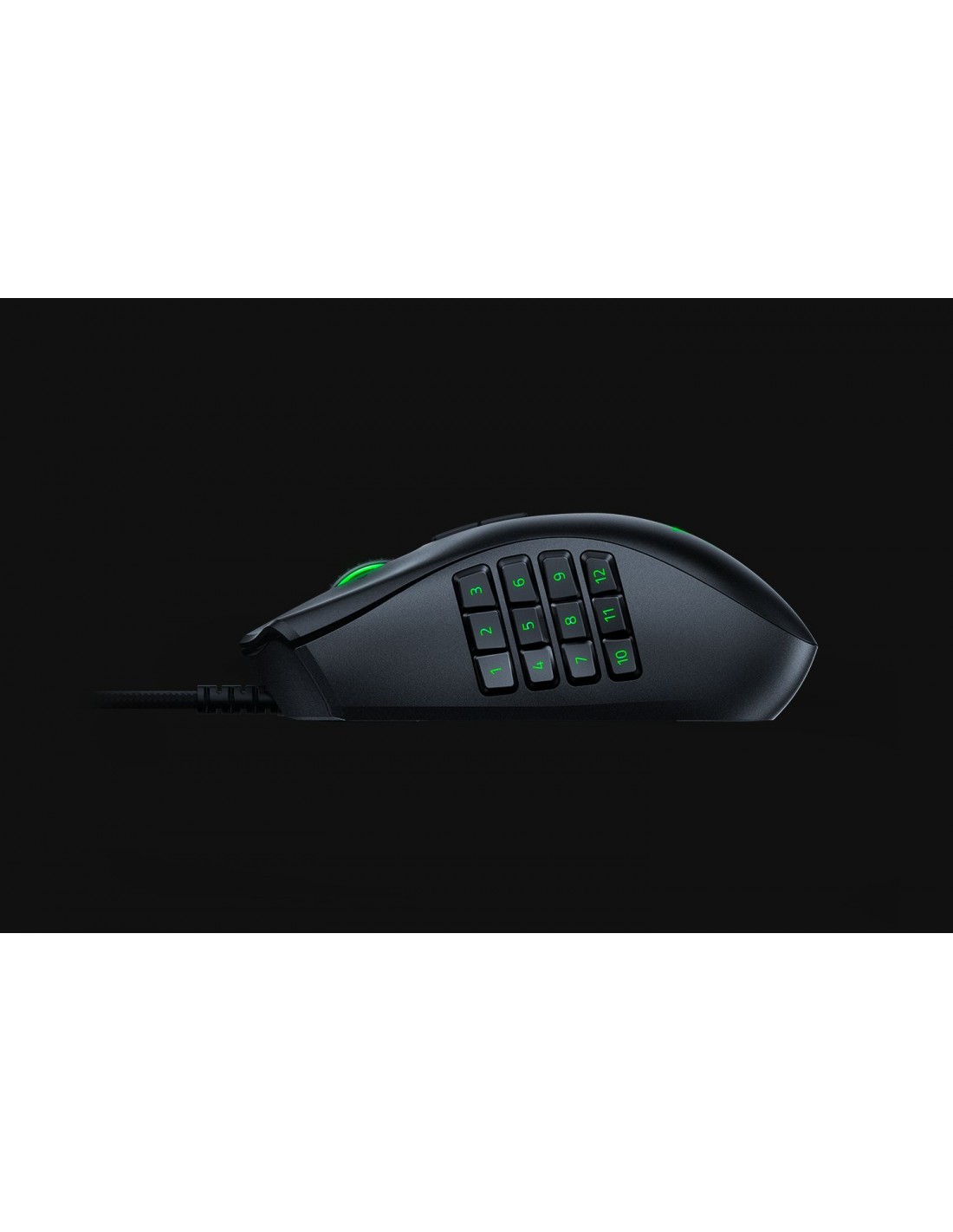 Razer Naga Trinity. Fattore di forma: Mano destra. Tecnologia di rilevamento del movimento: Ottico, Interfaccia dispositivo: USB, Risoluzione movimento: 16000 DPI, Tipo di pulsanti: Tasti premuti, Numero di tasti: 19, Tipo di scorimmento: Rotella, Accelerazione (max): 50 G. Alimentazione: Cavo. Colore del prodotto: Nero, Verde