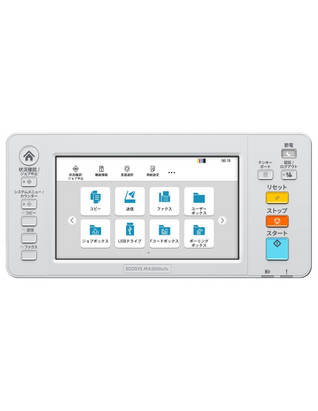KYOCERA ECOSYS MA3500cifx. Tecnologia di stampa: Laser, Stampa: Stampa a colori, Risoluzione massima: 1200 x 1200 DPI, Velocità di stampa (colore, qualità normale, A4/US Letter): 35 ppm. Copia: Copia a colori, Risoluzione di copia massima: 600 x 600 DPI. Scansione: Scansione a colori, Risoluzione di scansione ottica: 600 x 600 DPI. Fax: Mono fax. Funzione duplex: Copia, Fax, Stampa, Scansione. Massimo formato carta serie ISO A: A4. Stampa diretta. Colore del prodotto: Nero, Bianco