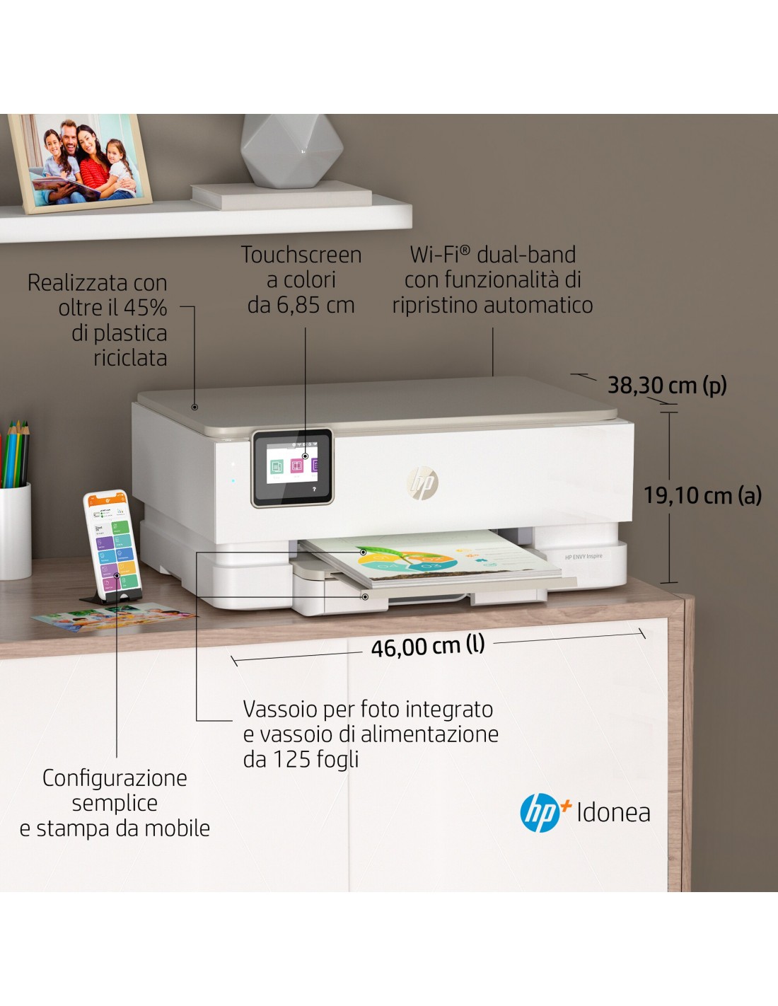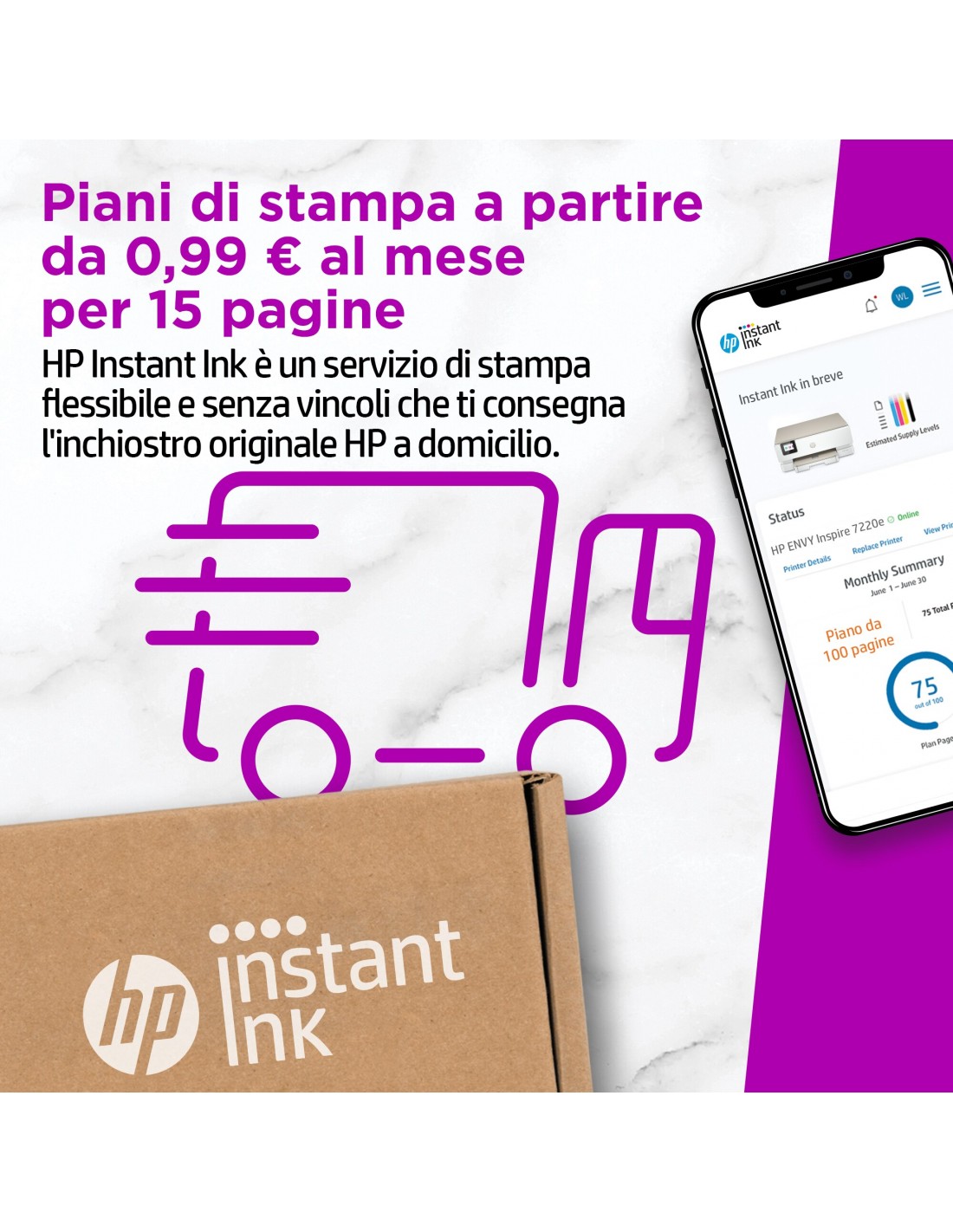ENVY Stampante multifunzione Inspire 7220e, Colore, Stampante per Casa, Stampa, copia, scansione, wireless; +; Idoneo per Instant Ink; scansione verso PDF, Getto termico d\'inchiostro, Stampa a colori, 4800 x 1200 DPI, A4, Stampa diretta, Bianco
