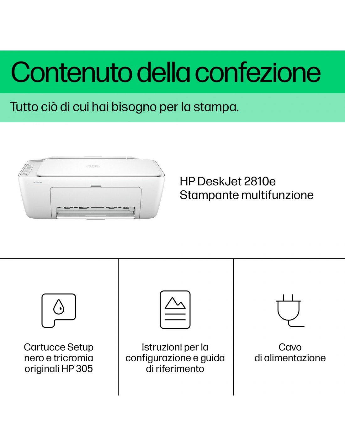 DeskJet Stampante multifunzione 2810e, Colore, Stampante per Casa, Stampa, copia, scansione, scansione verso PDF, Getto termico d\'inchiostro, Stampa a colori, 4800 x 1200 DPI, Copia a colori, A4, Bianco