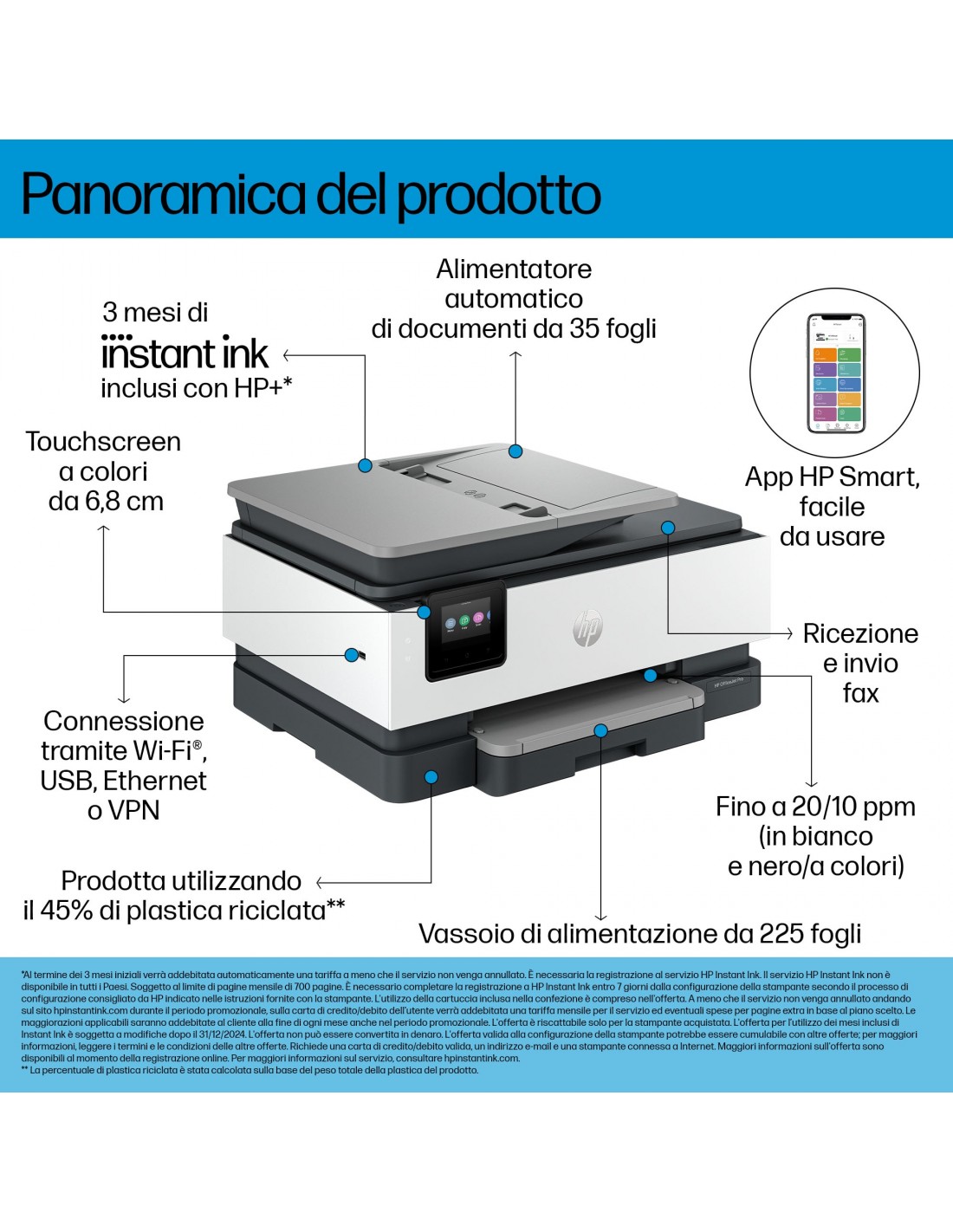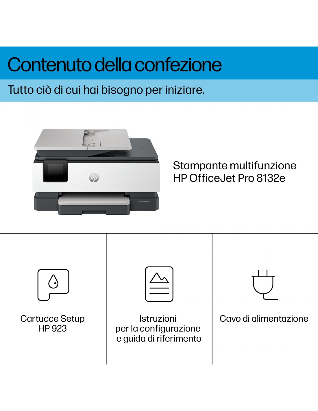 OfficeJet Pro Stampante multifunzione 8132e, Colore, Stampante per Casa, Stampa, copia, scansione, fax, idonea a Instant Ink; alimentatore automatico di documenti; touchscreen; Modalità silenziosa; Stampa tramite VPN con +, Getto termico d\'inchiostro, Stampa a colori, 4800 x 1200 DPI, A4, Stampa diretta, Grigio