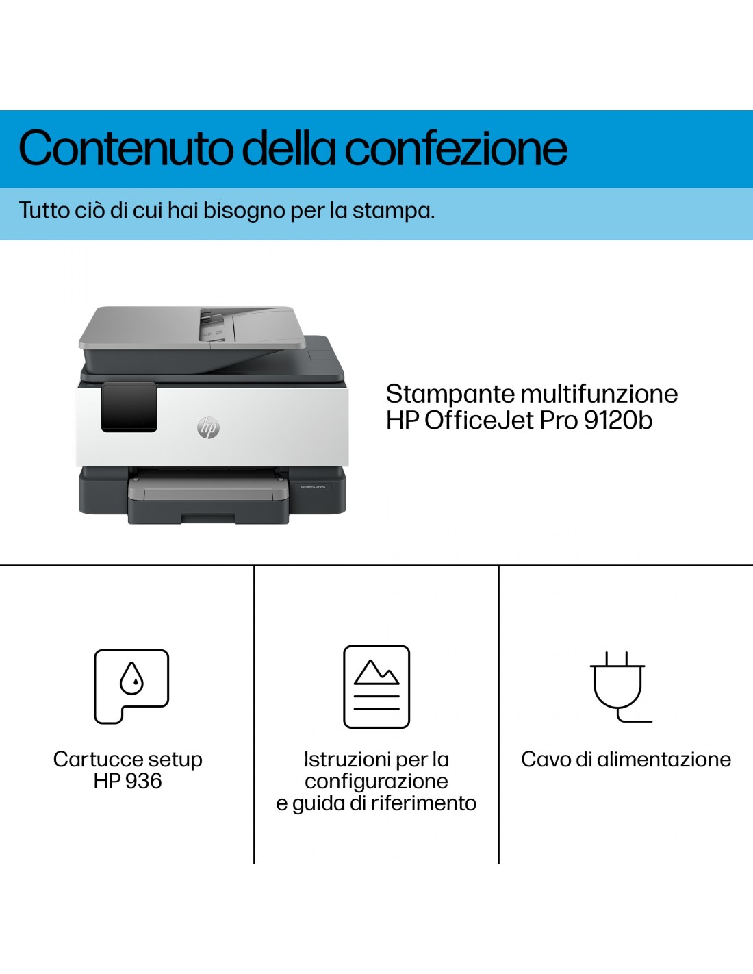 OfficeJet Pro Stampante multifunzione 9120b, Colore, Stampante per Abitazioni e piccoli uffici, Stampa, copia, scansione, fax, wireless; Stampa fronte/retro; scansione fronte/retro; Scansione verso e-mail; Scansione verso PDF; fax; porta unità flash USB anteriore; touchscreen; stampa da smartphone o tablet; Alimentatore automatico di documenti, Getto termico d\'inchiostro, Stampa a colori, 4800 x 1200 DPI, A4, Stampa diretta, Grigio