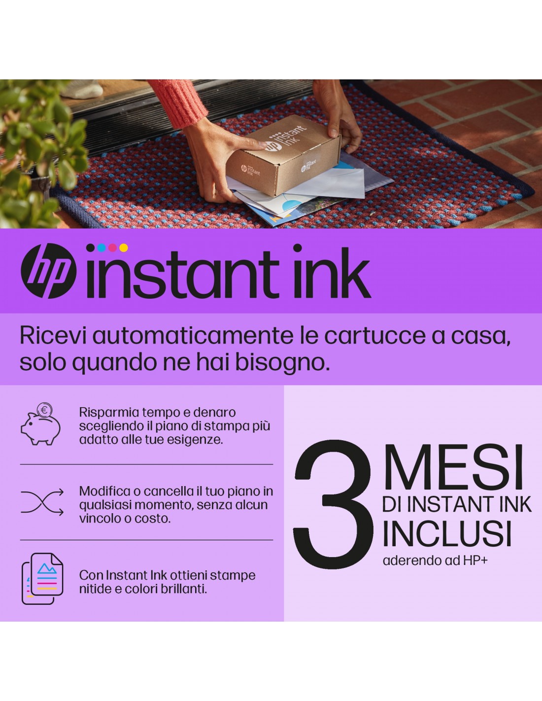 Stampante idonea a HP+. Scegli HP+ durante la procedura di configurazione della tua stampante per attivare tutti i vantaggi. HP+ richiede un account HP, una connessione a Internet continua e l'uso esclusivo delle cartucce di inchiostro Originali HP per tutta la durata di vita della stampante. Per maggiori informazioni consultare: http://www.hp.com/plus