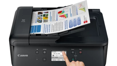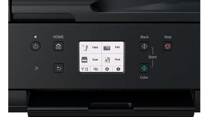 Stampante 4 in 1 compatta dal design salvaspazio e facile da usare grazie al pannello di controllo inclinabile con ampio touch screen a colori da 3" e configurazione intuitiva tramite codice QR