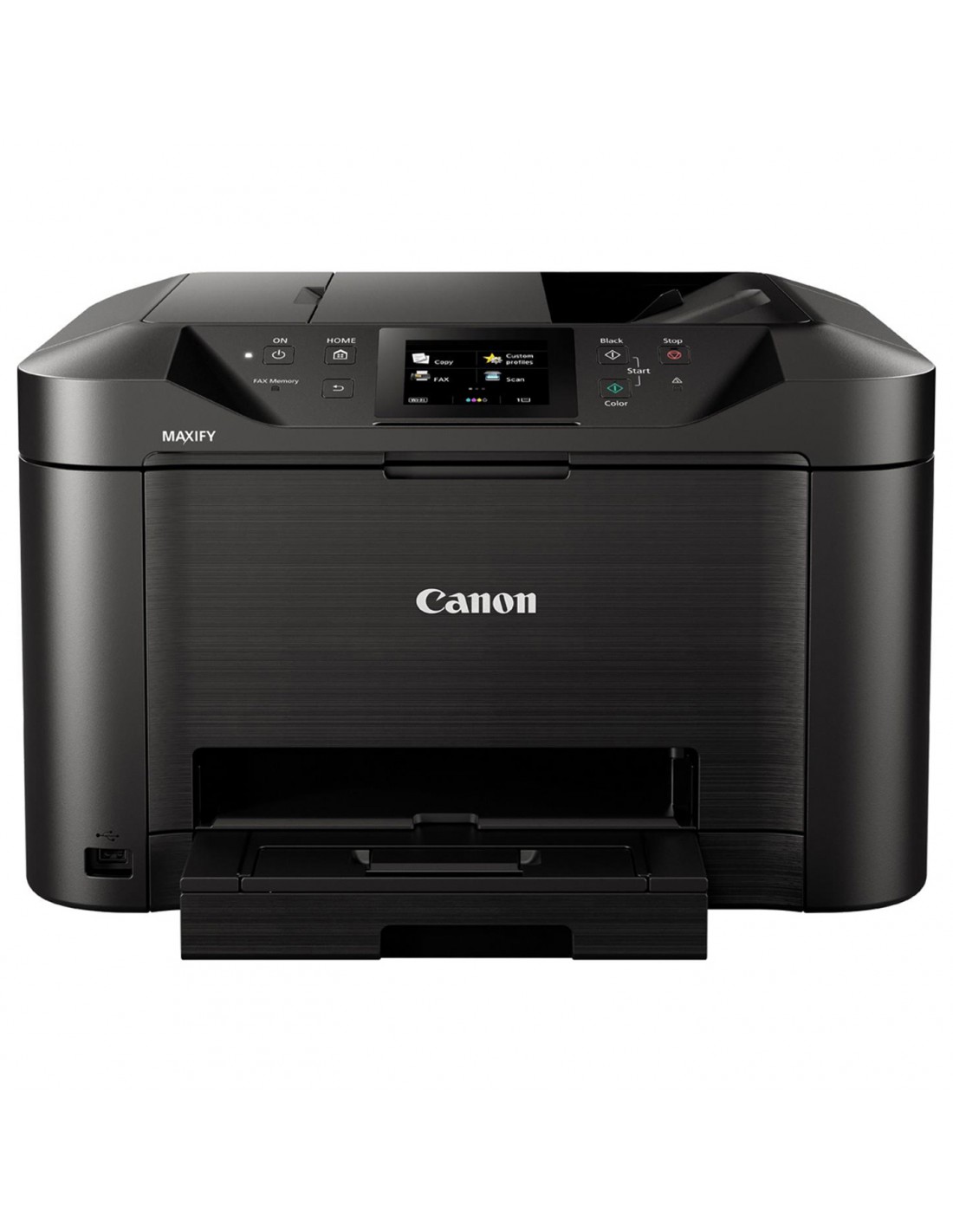 Stampa, copia, scansione e invio di fax sono semplicissimi grazie al grande touch screen TFT a colori da 8,8 cm (3,5") e all'ottimizzata interfaccia utente di Canon MAXIFY MB5150. Il multifunzione supporta stampa fronte-retro e un'ampia gamma di formati e tipi di carta, dalla carta comune A4 a etichette, buste, carta fotografica e persino copiatura fronte-retro di documenti d'identità per soddisfare le più diffuse esigenze di stampa di qualsiasi ufficio. Inoltre è dotato di un cassetto carta di capacità pari a 250 fogli e di un alimentatore automatico di documenti (D-ADF) da 50 fogli.