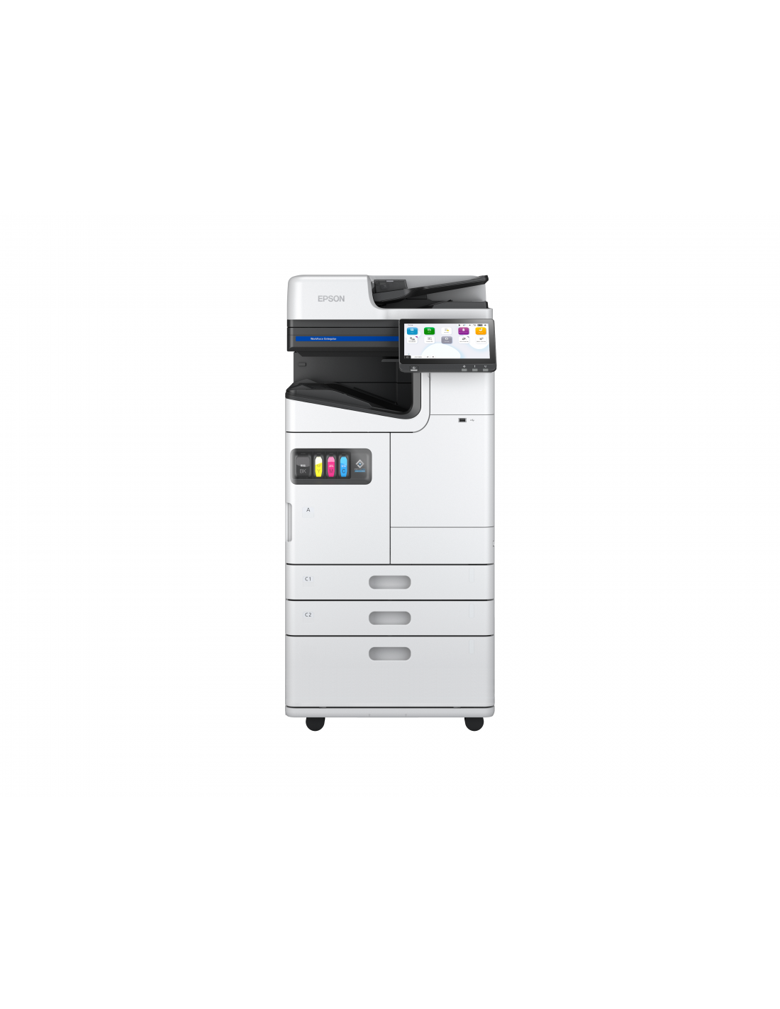 Epson WorkForce Enterprise AM-C4000. Tecnologia di stampa: Ad inchiostro, Stampa: Stampa a colori, Risoluzione massima: 600 x 2400 DPI, Velocità di stampa (colore, qualità normale, A4/US Letter): 40 ppm. Copia: Copia a colori, Risoluzione di copia massima: 600 x 600 DPI. Scansione: Scansione a colori, Risoluzione di scansione ottica: 600 x 1200 DPI. Fax: Fax a colori. Funzione duplex: Stampa, Scansione. Massimo formato carta serie ISO A: A3. Colore del prodotto: Nero, Bianco