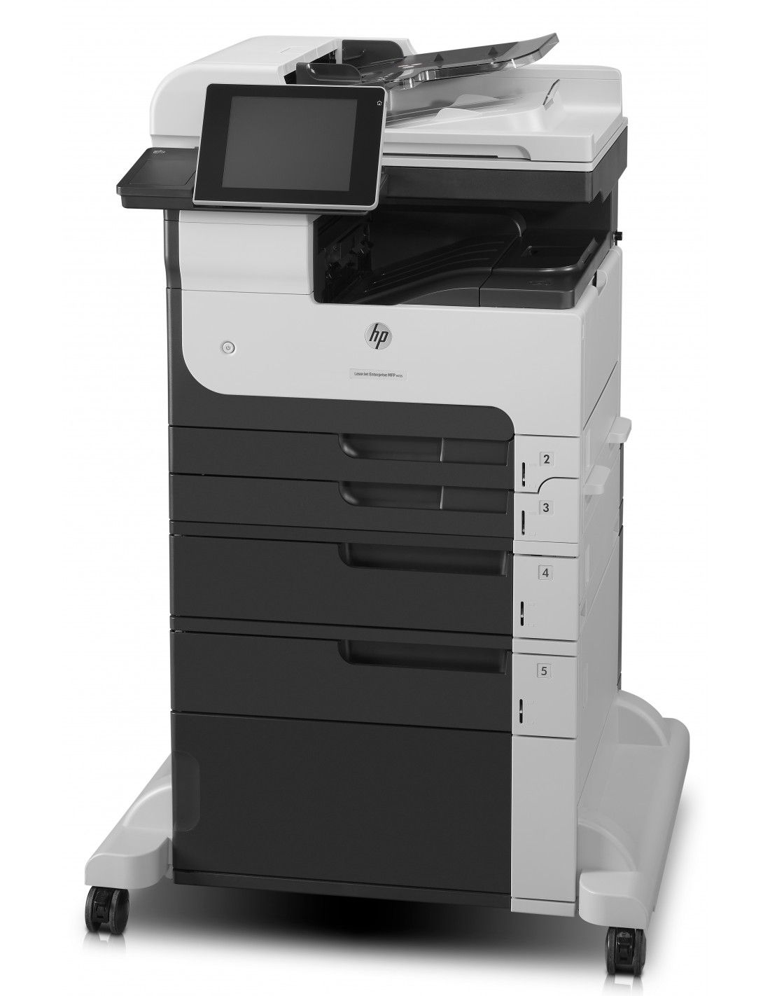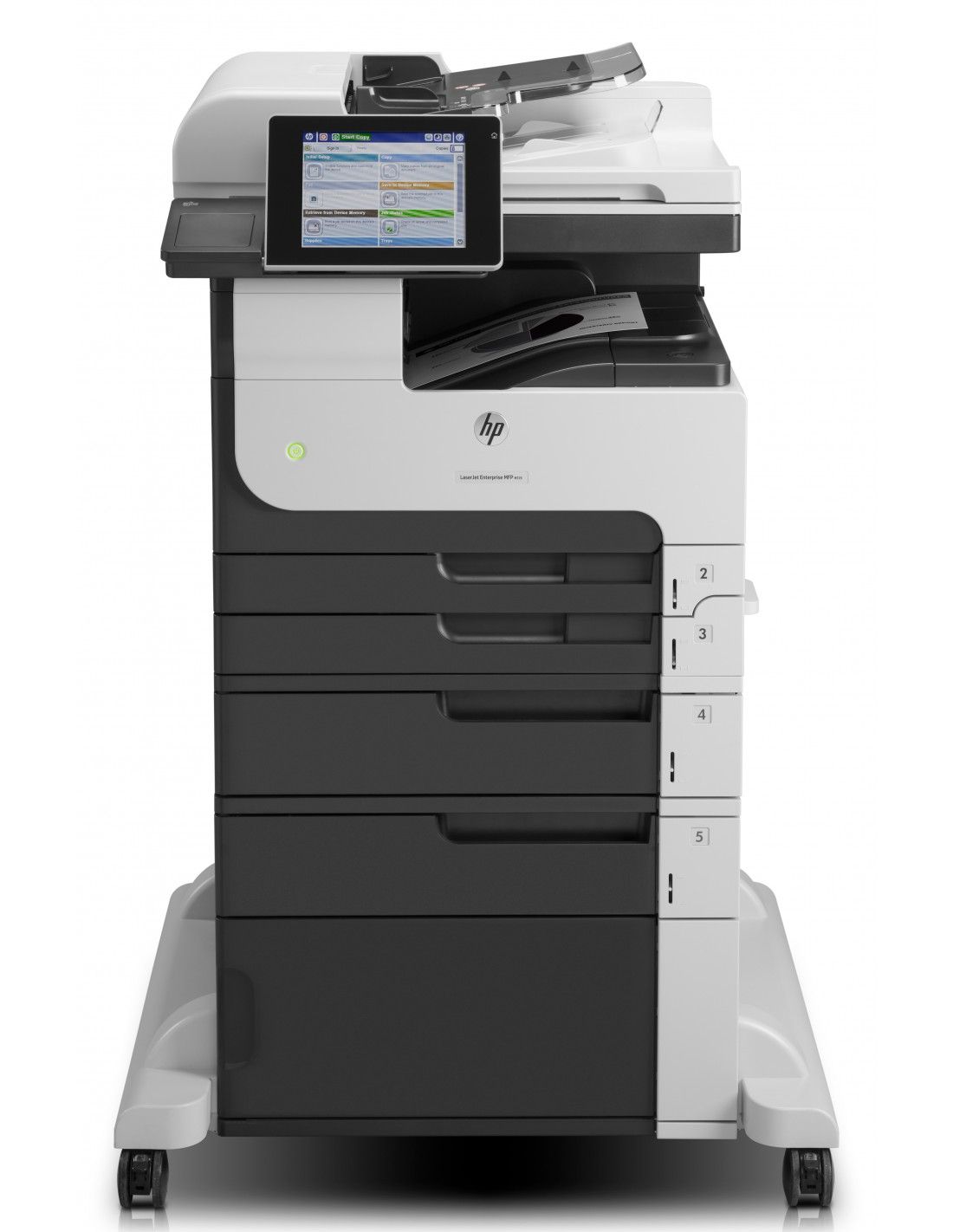 Come stampante multifunzione HP LaserJet Enterprise M725dn, con fax incorporato; 1 vassoio da 500 fogli; 1 alimentatore con supporto e cabinet da 500 fogli.