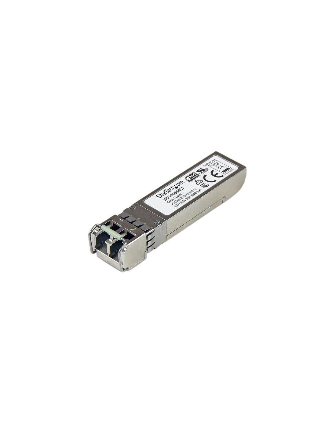 SFP10GBSRST è un ricetrasmettitore SFP in fibra conforme a MSA progettato, programmato e testato con switch e router MSA compatibili con 10GBASE-SR. Il modulo ricetrasmettitore SFP+ supporta una distanza fino a 300 m e offre una connettività da 10 GbE affidabile tramite cavo in fibra.