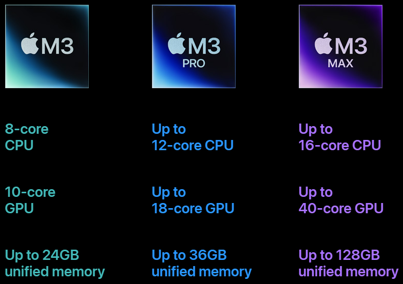 - I SUPERPOTERI DI M3 PRO O M3 MAX – Il chip Apple M3 Pro, con una CPU fino a 12-core e una GPU fino a 18-core che sfrutta il ray tracing con accelerazione hardware, offre performance straordinarie per i lavori impegnativi, come manipolare enormi immagini panoramiche nell’ordine dei gigapixel, o compilare milioni di righe di codice. Il chip M3 Max ha una CPU fino a 16-core e una GPU fino a 40-core che spingono le performance a livelli estremi. Dai rendering di intricati contenuti in 3D allo sviluppo di modelli trasformatori con miliardi di parametri, potrai gestire in scioltezza anche i workflow più complessi.