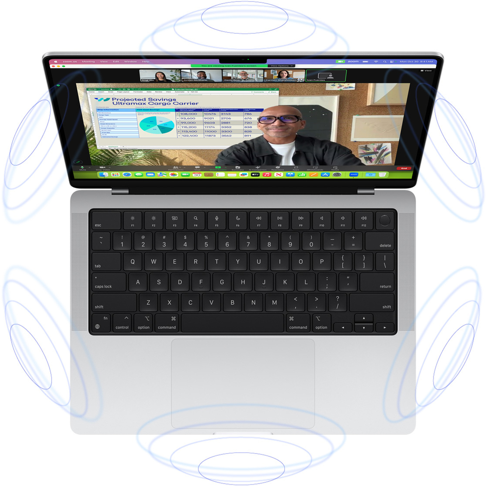 - VIDEOCAMERA E AUDIO EVOLUTI – Videocamera FaceTime HD a 1080p, tre microfoni di qualità professionale in array, sistema a sei altoparlanti con audio spaziale: una gioia per gli occhi e per le orecchie.