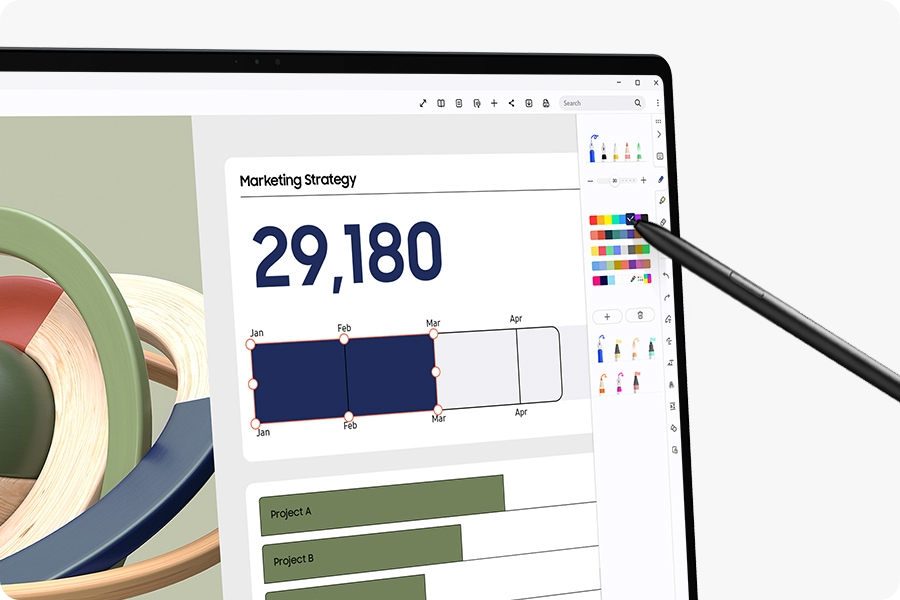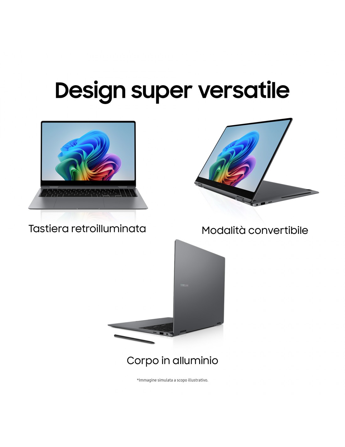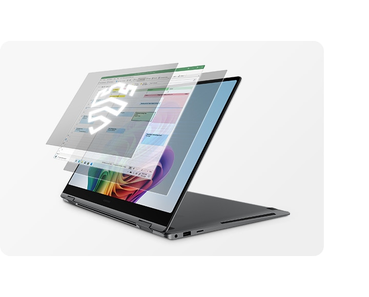 Con lo schermo touchscreen di Galaxy Book5 Pro 360, ogni controllo è a portata di dita. Naviga tra le app e i menu, modifica i contenuti, ottimizza i dettagli di un progetto e molto altro ancora, grazie a gesti multi-touch intuitivi che migliorano la produttività e la creatività a ogni tocco.