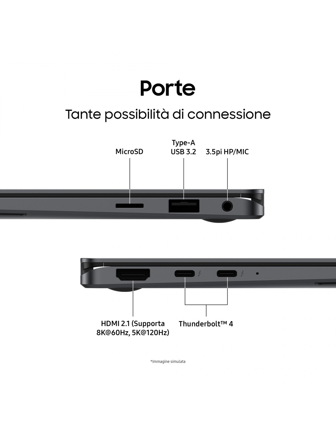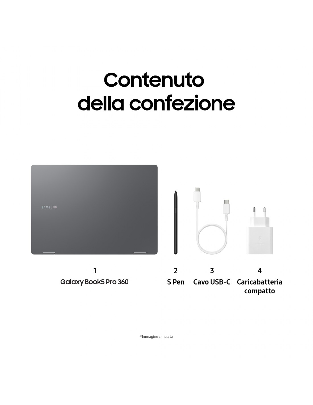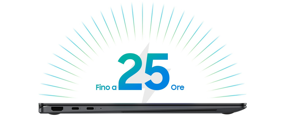 La produttività è assicurata: con una sola ricarica della batteria a lunga durata di Galaxy Book5 Pro 360 avrai fino a 25 ore di autonomia video. Per ricaricarla, collega il caricabatterie compatto e raggiungi il 35% in soli 30 minuti con la ricarica rapida.