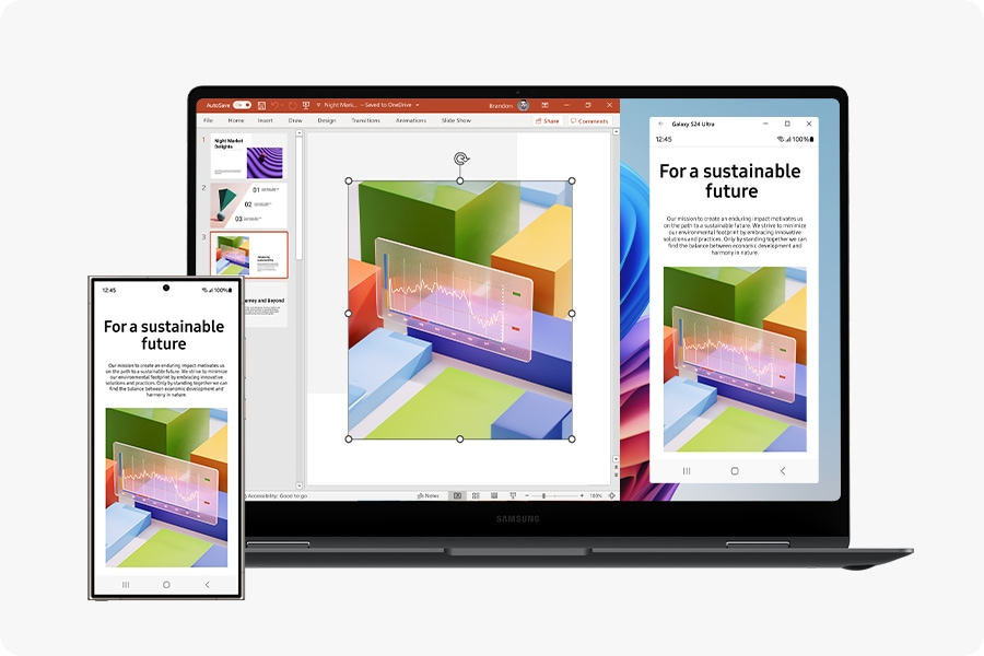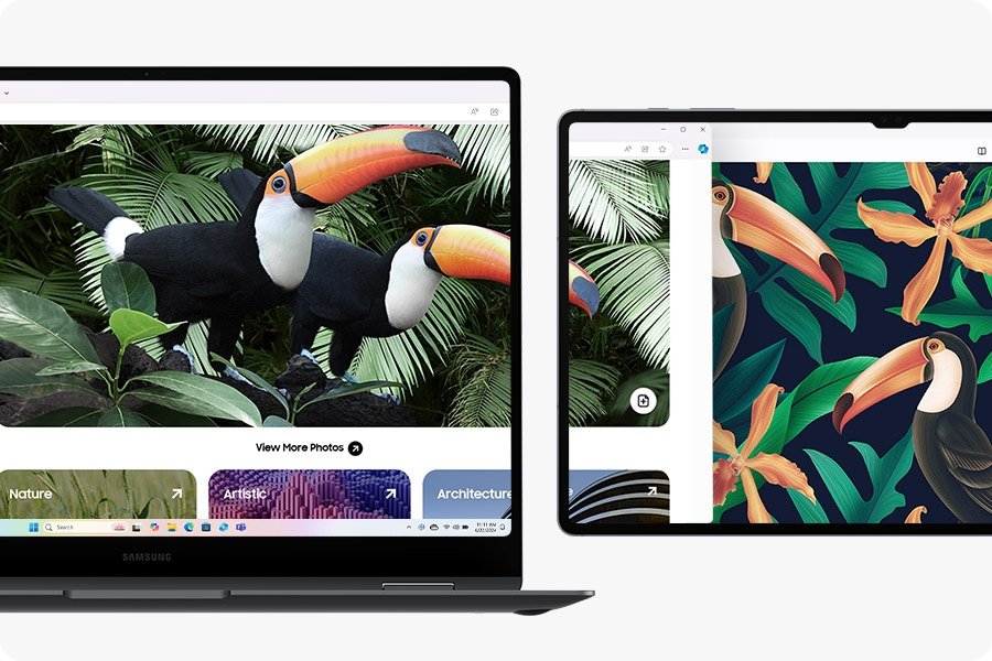 Raddoppia il tuo spazio di lavoro collegando Galaxy Tab al PC come schermo aggiuntivo. Collega i dispositivi con un semplice clic sul laptop, quindi sfrutta lo spazio extra di Galaxy Tab con le modalità Estendi, Duplica e Ruota per riorganizzare la visualizzazione.