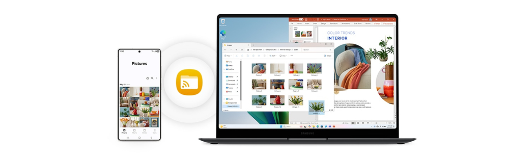 Connetti il tuo smartphone al PC con Collegamento al Telefono per accedere alle pagine web visitate di recente o lanciare fino a 5 app mobile direttamente dal tuo laptop. Usa le funzioni AI intelligenti del tuo smartphone Galaxy e ottieni una visione ampliata sul grande schermo di Galaxy Book5 Pro.