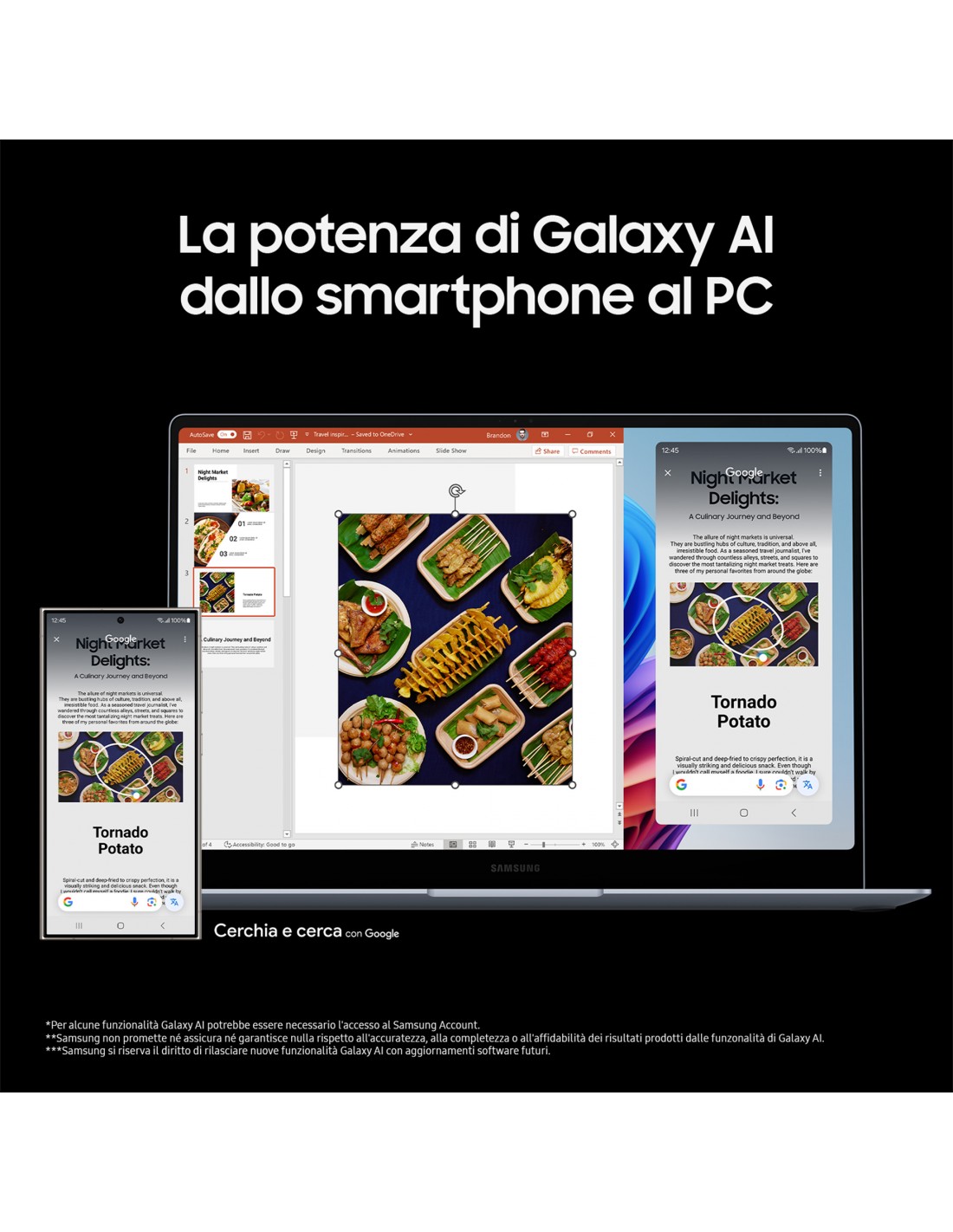 Connetti il tuo smartphone al PC con Collegamento al Telefono per accedere alle pagine web visitate di recente o lanciare fino a 5 app per dispositivi mobili direttamente dal tuo laptop. Sfrutta le funzioni AI e visualizzale ingrandite sull'ampio schermo di Galaxy Book4 Edge.