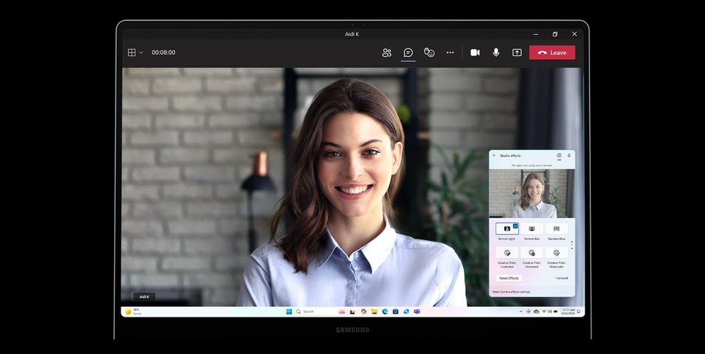 Mostra il tuo lato migliore nelle videochiamate con Windows Effetti Studio su Galaxy Book4 Edge. Ritocca il tuo aspetto con funzionalità AI come inquadratura automatica, contatto visivo, miglioramento della luce, effetti di sfondo e filtri, per apparire sempre al meglio alle riunioni.