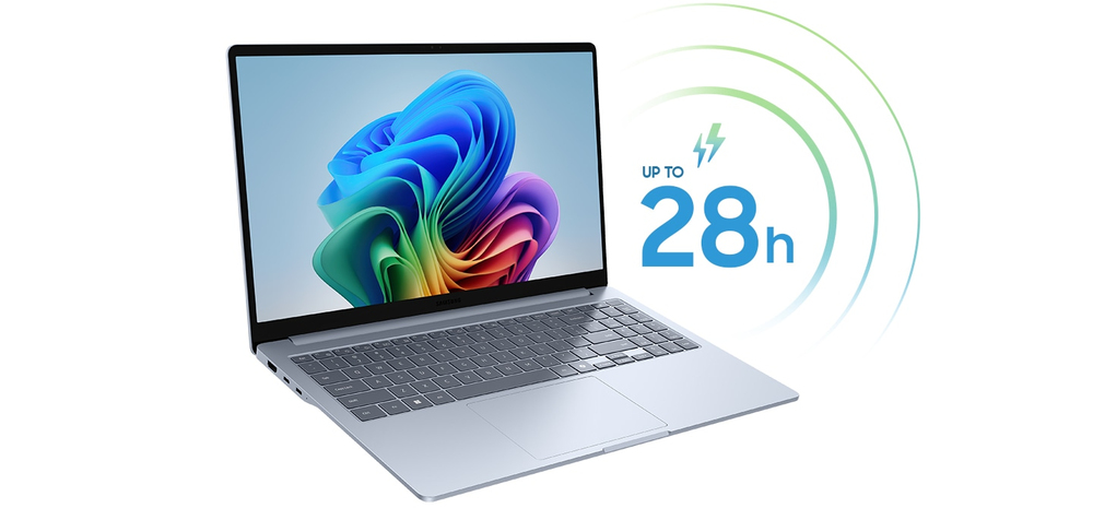Al lavoro o fuori ufficio, la batteria del modello Galaxy Book4 Edge da 15,6" ha tutta la carica che ti serve, garantendo fino a 28 ore di autonomia video. Per una carica extra, la funzione Super Fast Charging ricarica fino al 44% in appena 30 minuti con il caricabatterie incluso.