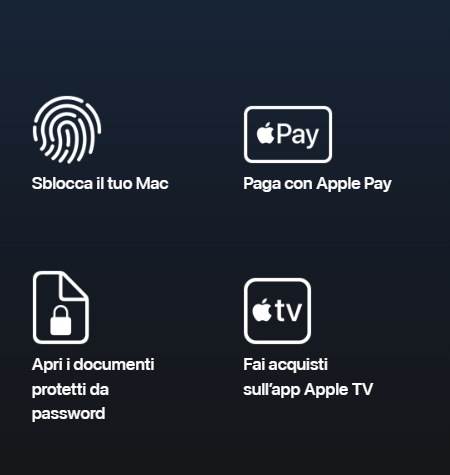 | Software forniti | App Store Books Calendar Contacts FaceTime Find My GarageBand Home iMovie Keynote Mail Maps Messages Music News Notes Numbers Pages Photo Booth Photos Podcasts Preview QuickTime Player Reminders Safari Shortcuts Siri Stocks Time Machine TV Voice Memos |
