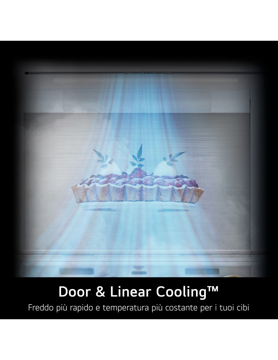 Grazie alla tecnologia Total No Frost con colonna Multi Air Flow LG la temperatura all'interno del frigorifero raggiunge il livello impostato e rimane uniforme per consentire una migliore e più lunga conservazione degli alimenti.
