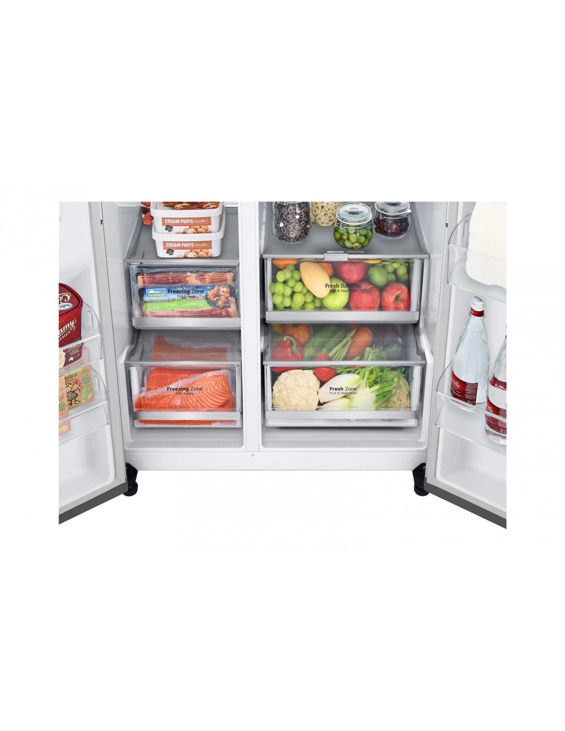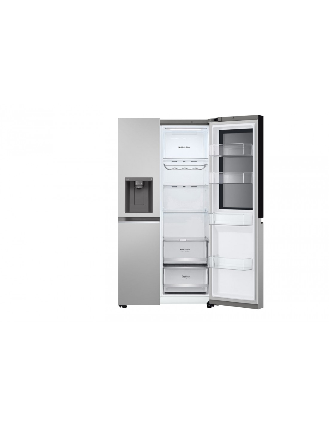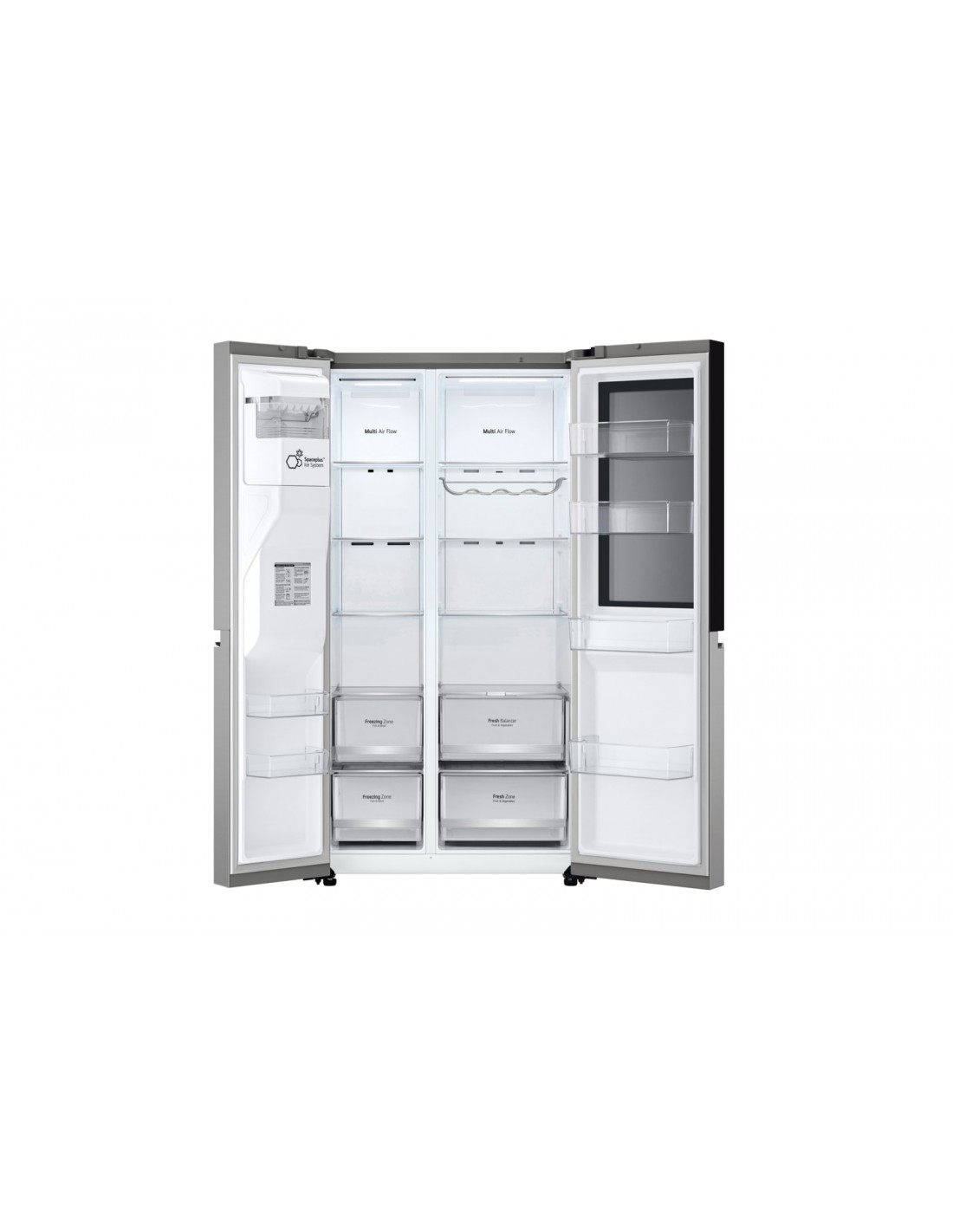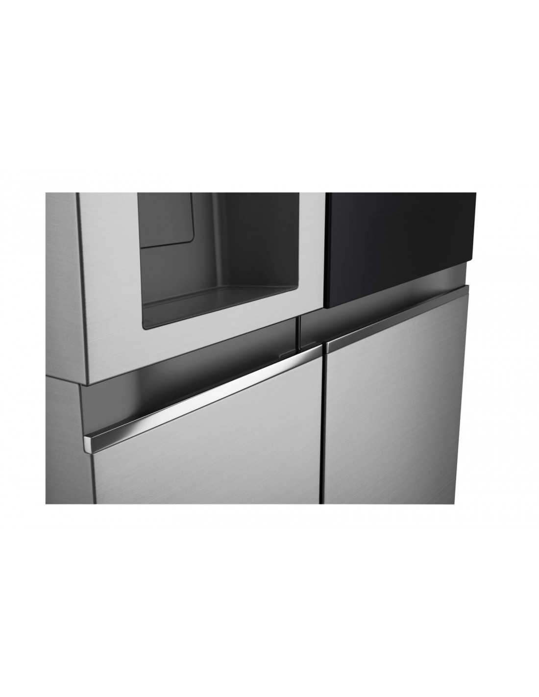 LG InstaView GSGV80PYLD. Posizionamento dell'apparecchio: Libera installazione, Design del prodotto: Porta americana, Colore del prodotto: Argento. Capacità netta totale: 635 L, Classe climatica: T, Classe emissione rumore: B. Capacità netta frigorifero: 416 L. Capacità netta congelatore: 219 L, Posizione del congelatore: Posizionato lateralmente, Capacità di congelamento: 12 kg/24h. Classe efficienza energetica: D, Consumo energetico annuo: 280 kWh, Scala di efficienza energetica: Da A a G