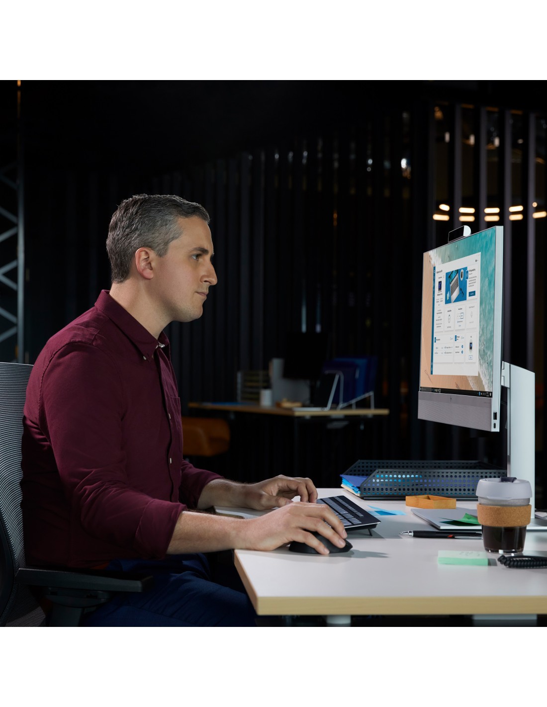 HP EliteOne 840 AiO permette ai vostri dipendenti di lavorare al meglio e facilita la gestione da parte dell'IT. Dotato di un nuovo design elegante, del più recente processore Intel®[2] e di una nuova serie di tool di collaborazione avanzati, questo PC è pronto per i progetti più impegnativi e la collaborazione a distanza.