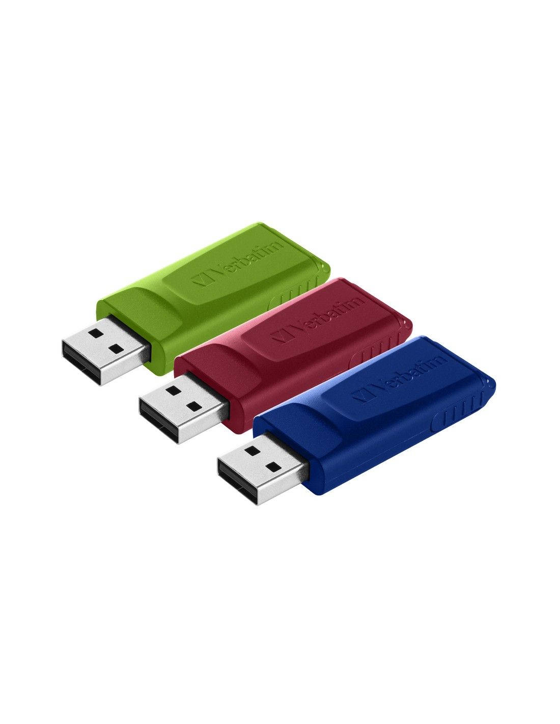 Verbatim Slider. Capacità: 16 GB, Interfaccia dispositivo: USB tipo A, Versione USB: 2.0. Fattore di forma: Lamina di scorrimento. Peso: 8 g. Colore del prodotto: Blu, Verde, Rosso