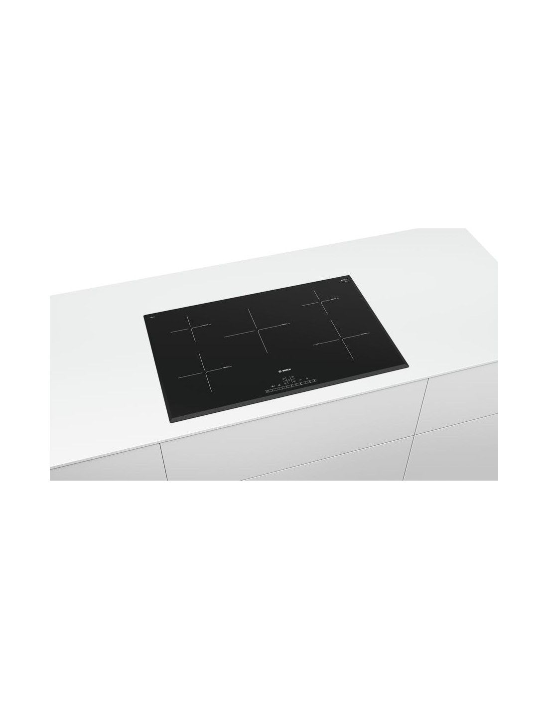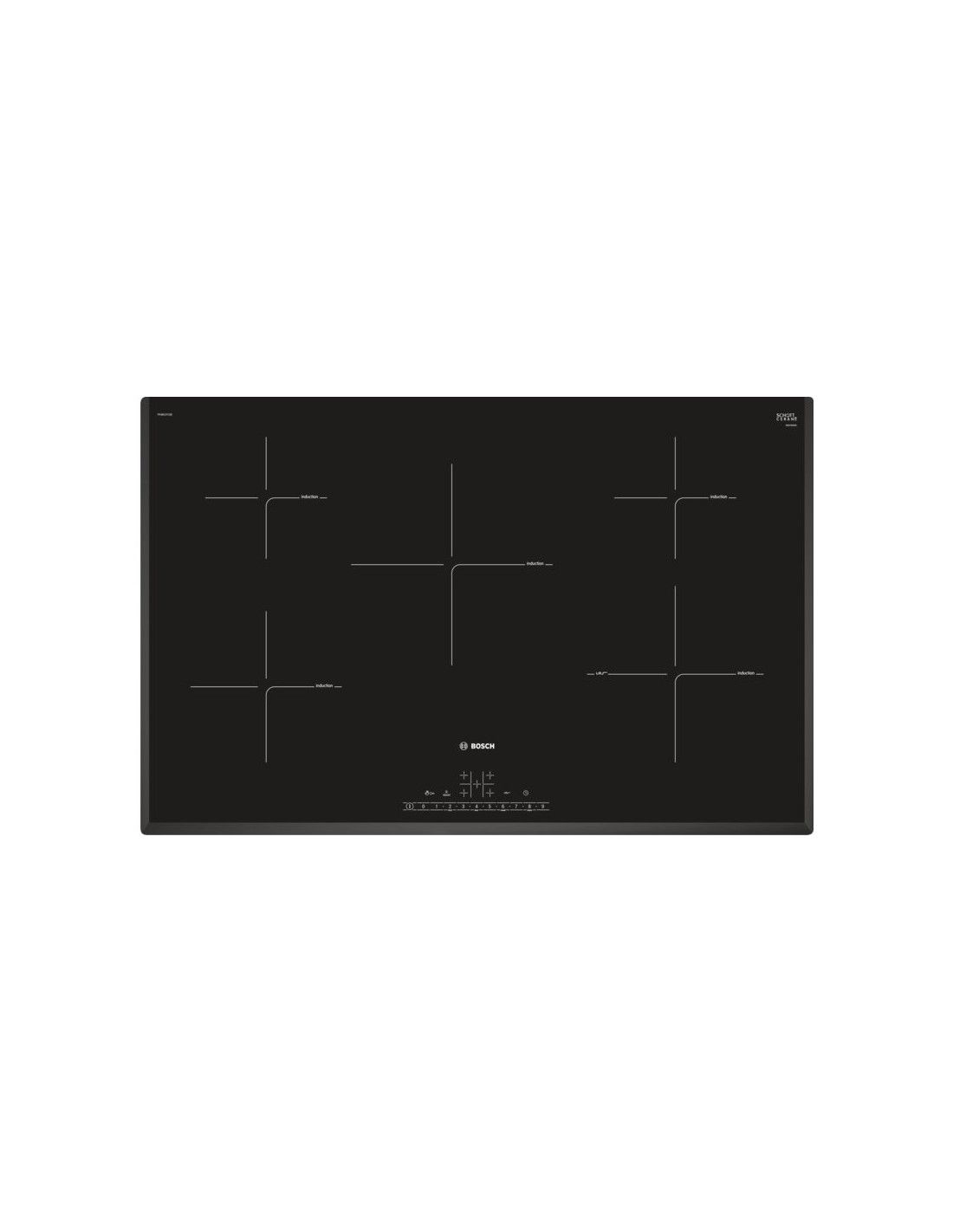 Bosch Serie 6 PIV851FC5E. Colore del prodotto: Nero, Posizionamento dell'apparecchio: Da incasso, Dimensione della larghezza del piano cottura: 80 cm. Certificazione: AENOR, CE. Tipo di controllo: Touch, Posizione di controllo: Frontale, Tipo di timer: Digitale. Potenza aggregata (elettrica): 7400 W, Tensione di ingresso AC: 220 - 240 V, Frequenza di ingresso AC: 50 - 60 Hz. Larghezza: 802 mm, Profondità: 522 mm, Altezza: 51 mm