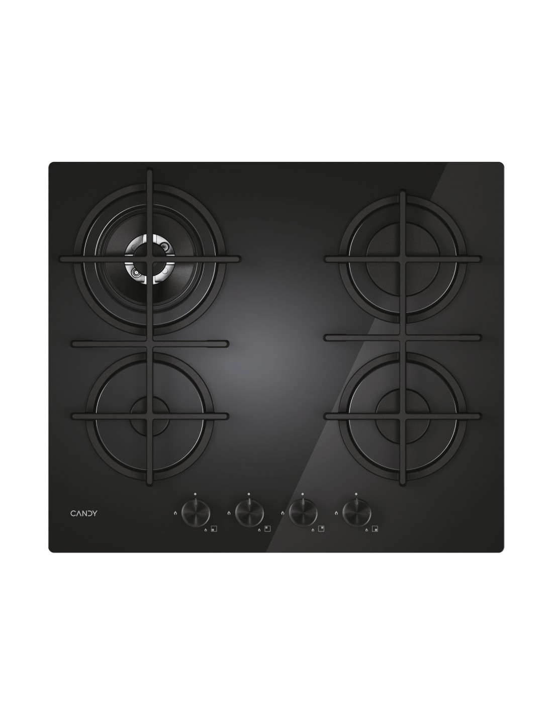 Candy Moderna CVG6BR4WTB. Colore del prodotto: Nero, Posizionamento dell'apparecchio: Da incasso, Dimensione della larghezza del piano cottura: 60 cm. Tipo di controllo: Manopola, Posizione di controllo: Frontale. Potenza aggregata (gas): 9450 W. Larghezza: 595 mm, Profondità: 510 mm, Altezza: 8 mm. Durata della garanzia: 2 anno/i