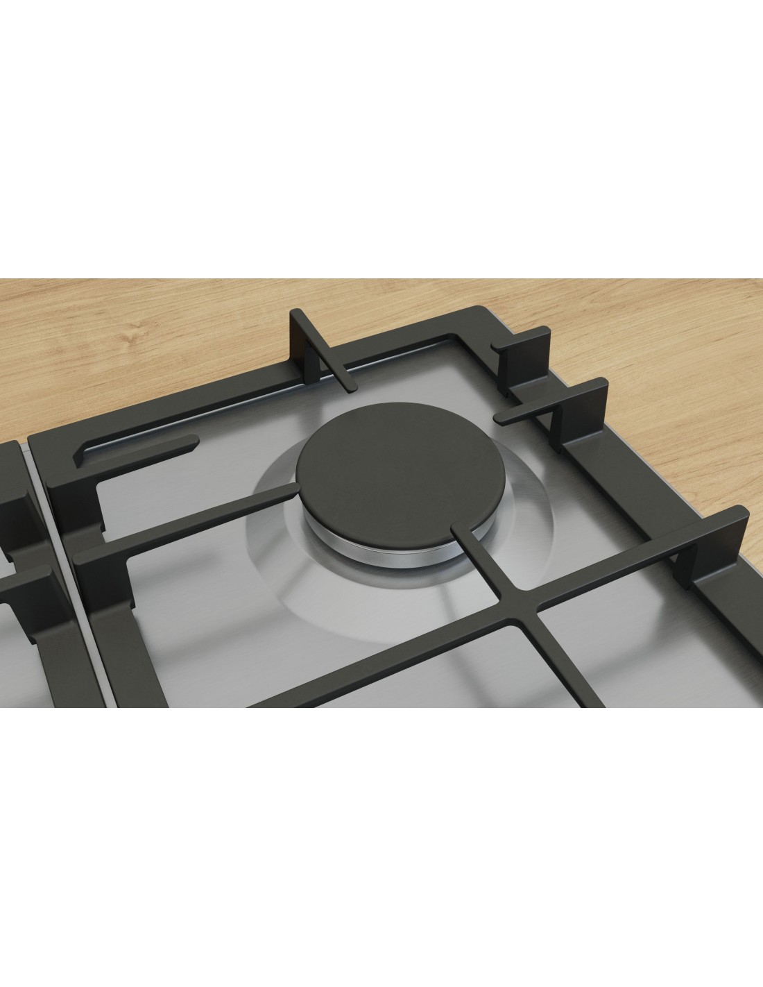 Piano cottura a gas con controllo preciso della fiamma Flame Select e facile pulizia grazie alle manopole magnetiche removibili e alle griglie in ghisa lavabili in lavastoviglie.