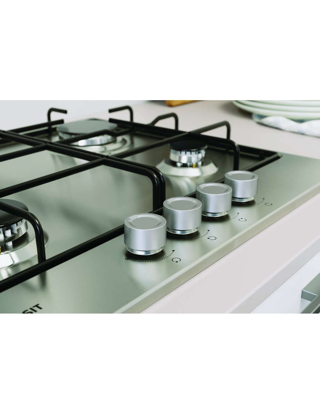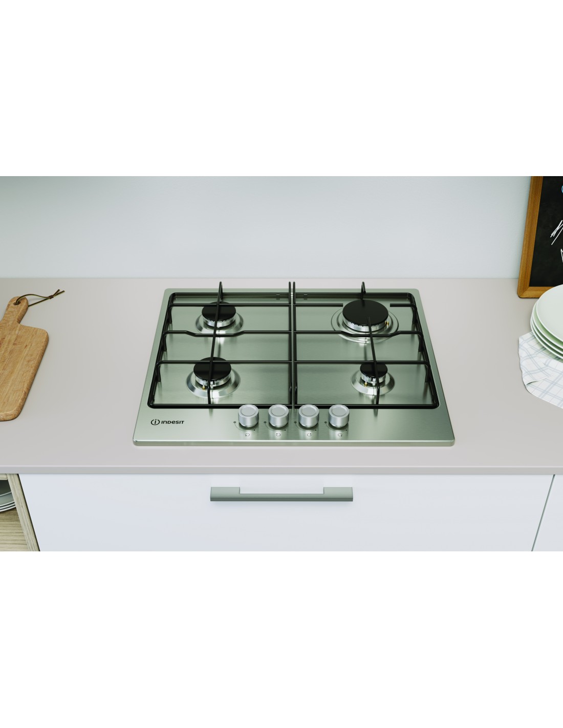 Indesit THP 642 IX/I 1 piano gas inox 60cm 4 fuochi griglie smaltate. Colore del prodotto: Acciaio inox, Posizionamento dell'apparecchio: Da incasso, Dimensione della larghezza del piano cottura: 60 cm. Tipo di controllo: Manopola, Posizione di controllo: Frontale. Potenza aggregata (gas): 7300 W, Tensione di ingresso AC: 220-240 V, Frequenza di ingresso AC: 50/60 Hz. Larghezza: 580 mm, Profondità: 510 mm, Altezza: 56 mm. Larghezza imballo: 660 mm, Profondità imballo: 590 mm, Altezza imballo: 160 mm