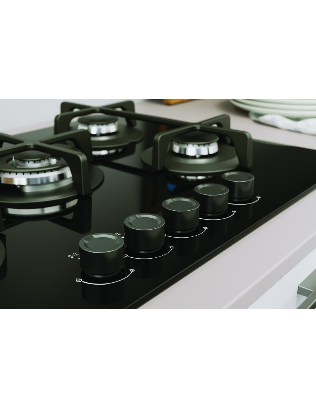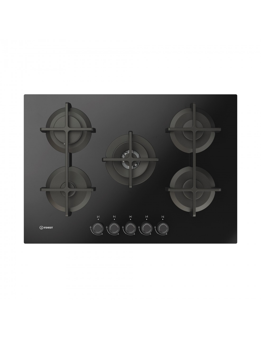 Indesit ING 72T/BK 1 piano gas vetro nero 75cm 5 fuochi bruciatore doppia corona griglie in ghisa lavabili in lavastoviglie. Colore del prodotto: Nero, Posizionamento dell'apparecchio: Da incasso, Dimensione della larghezza del piano cottura: 75 cm. Tipo di controllo: Manopola, Posizione di controllo: Frontale. Potenza aggregata (gas): 10800 W, Tensione di ingresso AC: 220-240 V, Frequenza di ingresso AC: 50/60 Hz. Larghezza: 730 mm, Profondità: 510 mm, Altezza: 51 mm. Larghezza imballo: 810 mm, Profondità imballo: 590 mm, Altezza imballo: 160 mm