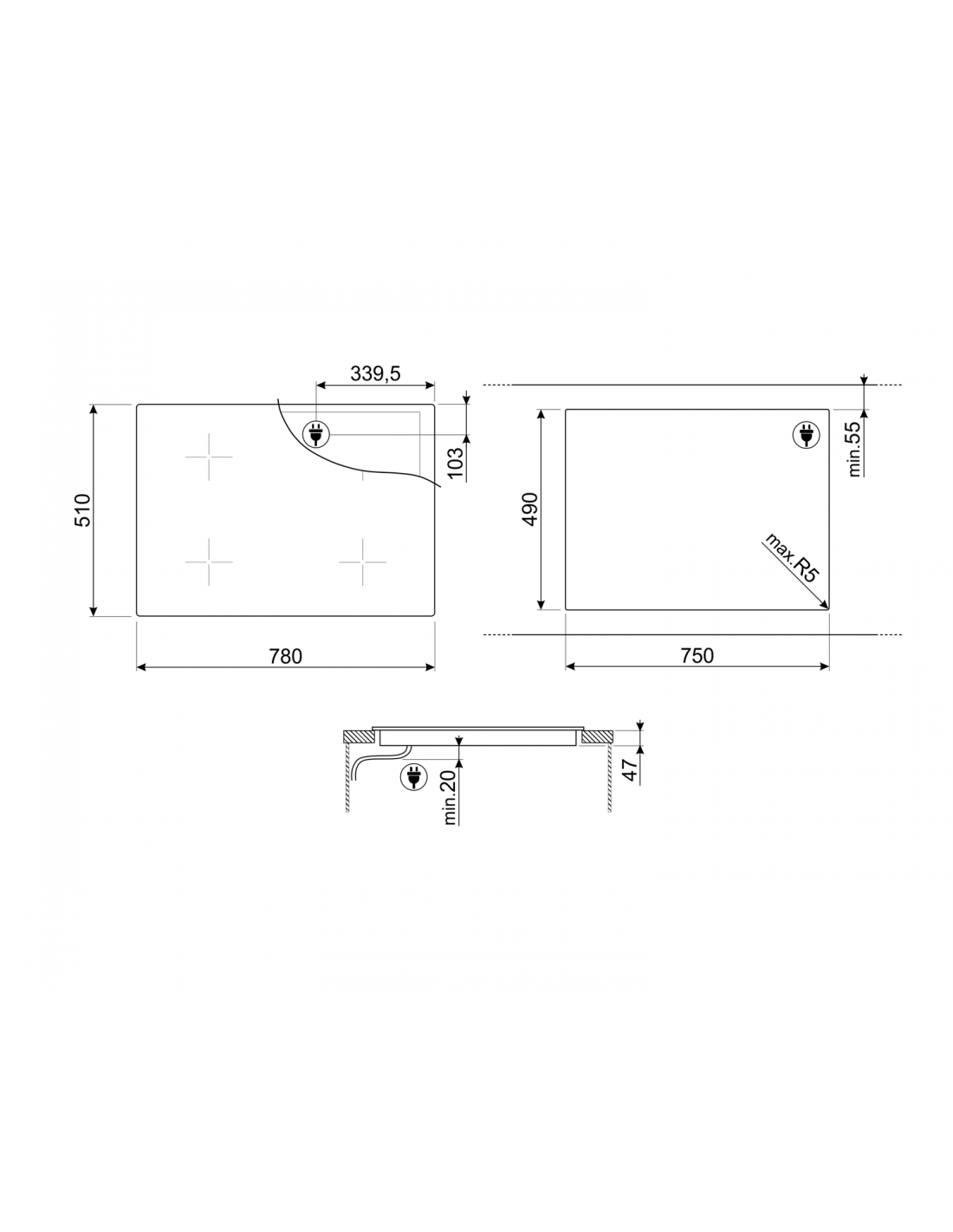 Dimensione della larghezza del piano cottura | 78 cm |